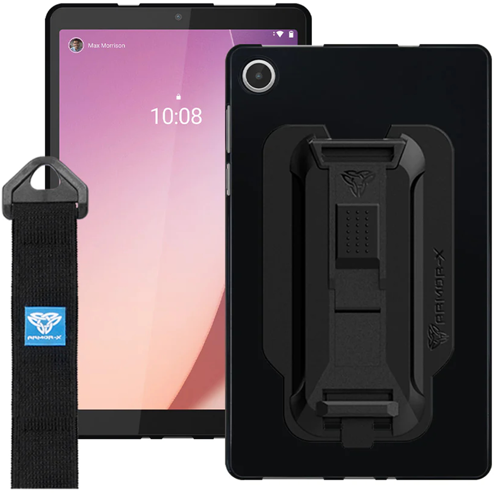 Armor-X (PXS Series) TPU Impact (Black) Protection Case for Lenovo 8" M8 (4th Gen) Tablet With KickStand & Handstrap - Black - Integrated X-Mount Type-T adaptor (Support Armox-X X-Mount Type-T Mount Accessories)