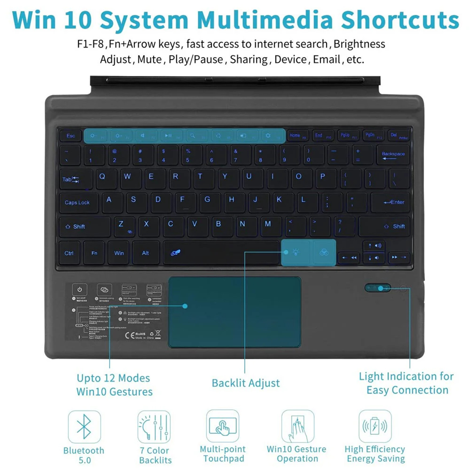 KBA-09 | Wireless Bluetooth Backlit Keyboard with Touchpad | for Microsoft Surface