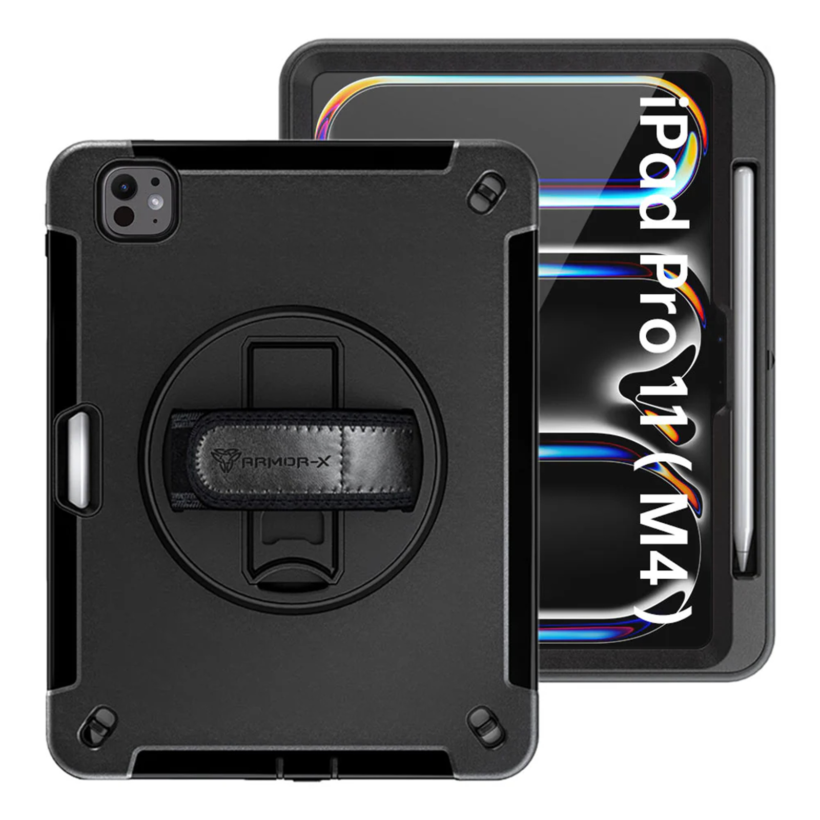 Armor-X (RIN Series) RainProof Military Grade Rugged Tablet Case With Hand Strap , Shoulder Strap & Kick-Stand for iPad Pro 11" ( M4 ) Only