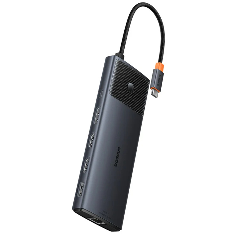 Baseus Metal Gleam Series II 11-in-1 USB Hub - Cosmic Black 2x HDMI 4K 60Hz1x DisplayPort 4K 60Hz2x USB-A 5Gb/s2x USB-A 480Mb/s1x RJ-45 1000Mb/s1x SD/TF 104MB/s1x USB-C PD 100W