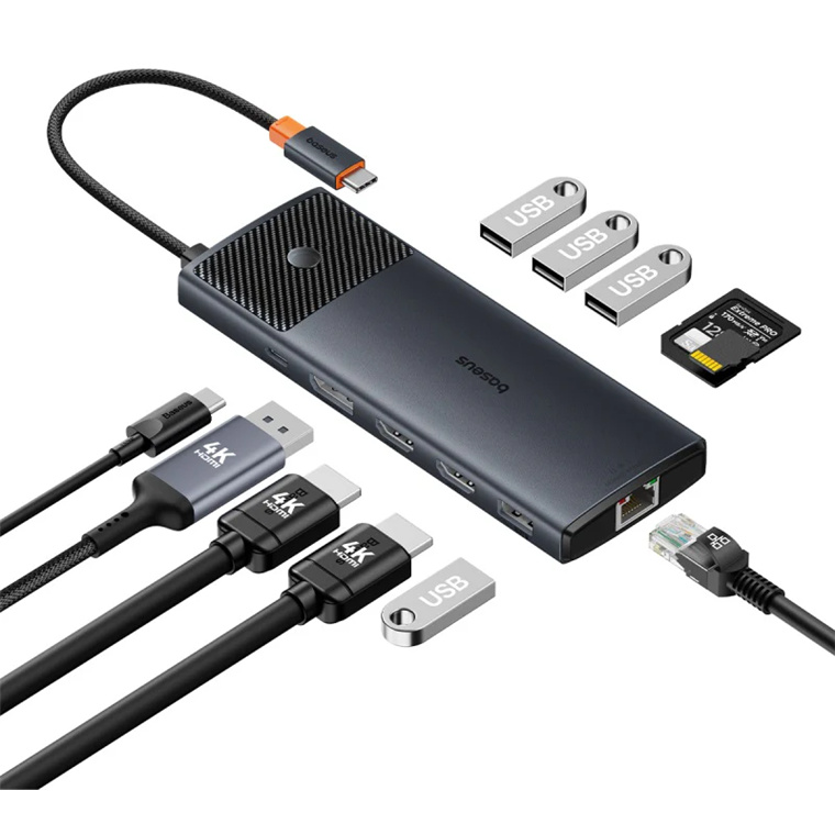 The ability to connect up to three screens simultaneously is a real treat for multitaskers. The Baseus Metal Gleam enables work on multiple screens at once, significantly increasing efficiency and work comfort.