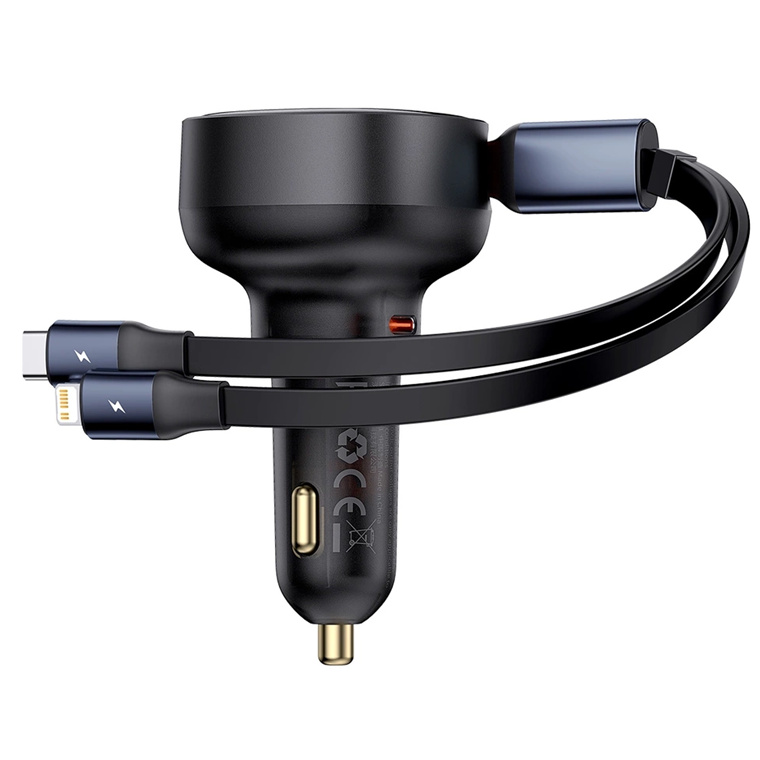 Baseus Enjoyment Pro Car Charger C+Retractable C & Lightning Cable 60W Cluster Black
