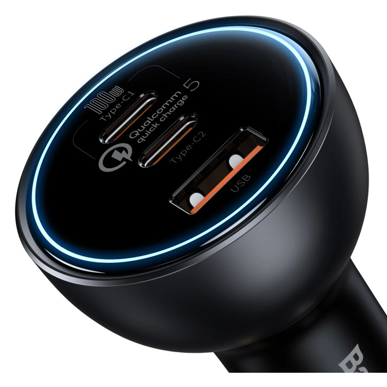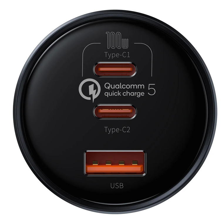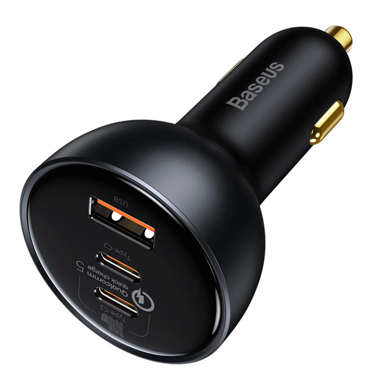 Baseus 160W USB C Car Charger supports PPS PD3.0 QC5.0 fast charging, 3 ports 100W+30W+30W independent fast charging technology, single port power will not decrease when 3 ports are used at the same time, can quickly charge 3 devices at the same time.