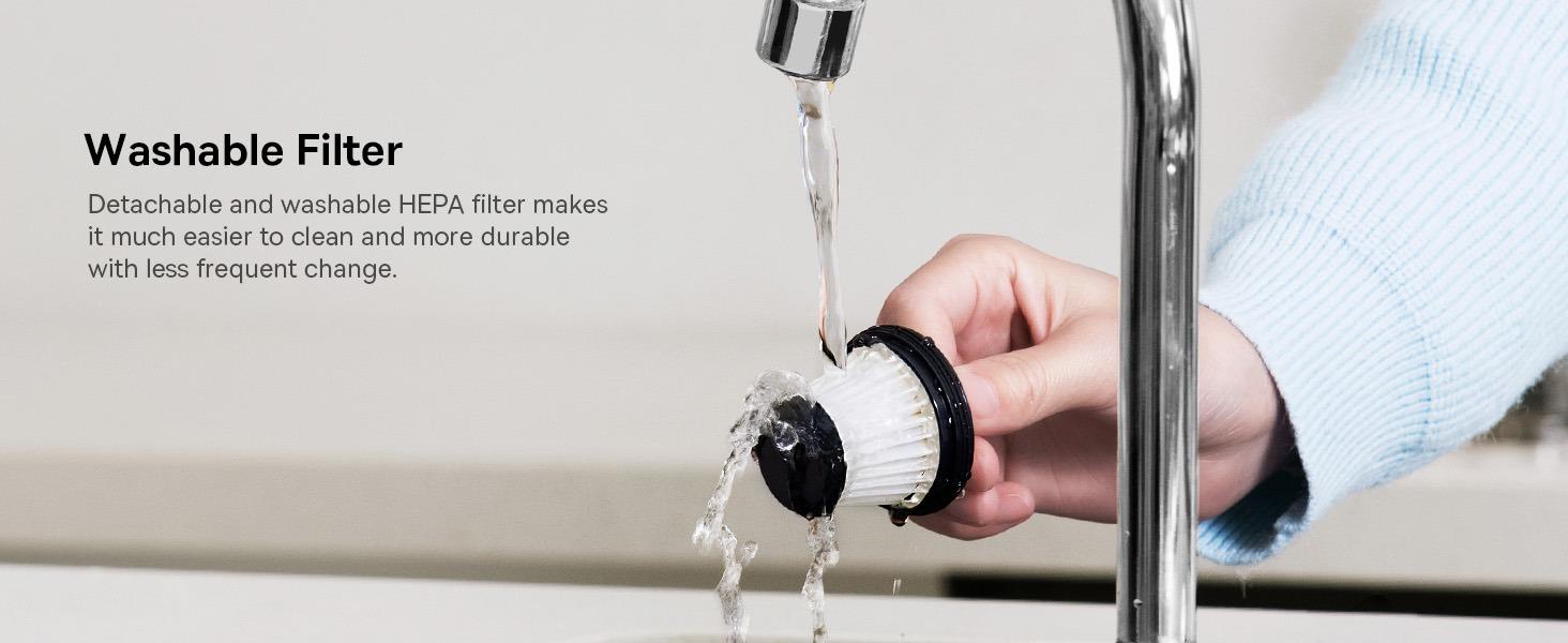 0.96lb Ultra Slim & Light Design: Cordless design with a slim and lightweight build, offers Baseus portable vacuum a comfortable grip and easier operation, long-time using without soreness, no longer bound by the power outlet. Reminder: Sudden stop may occur due to blockage of the filter, please clean the dust inside HEPA filter by knocking regularly, and replace the HEPA filter after a period of using.