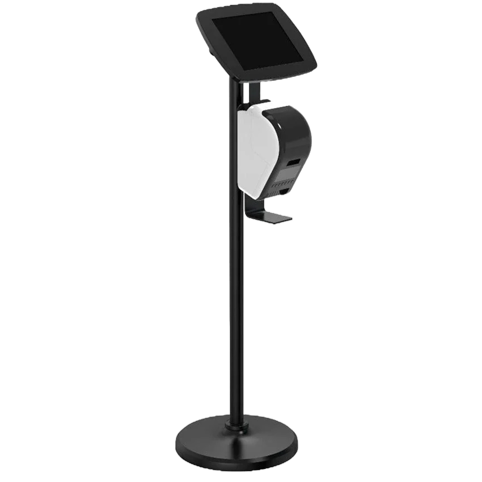 This Bouncepad Floor Stand tablet kiosk is designed to host the Brother QL-820-NWB or QL-810W label printer.