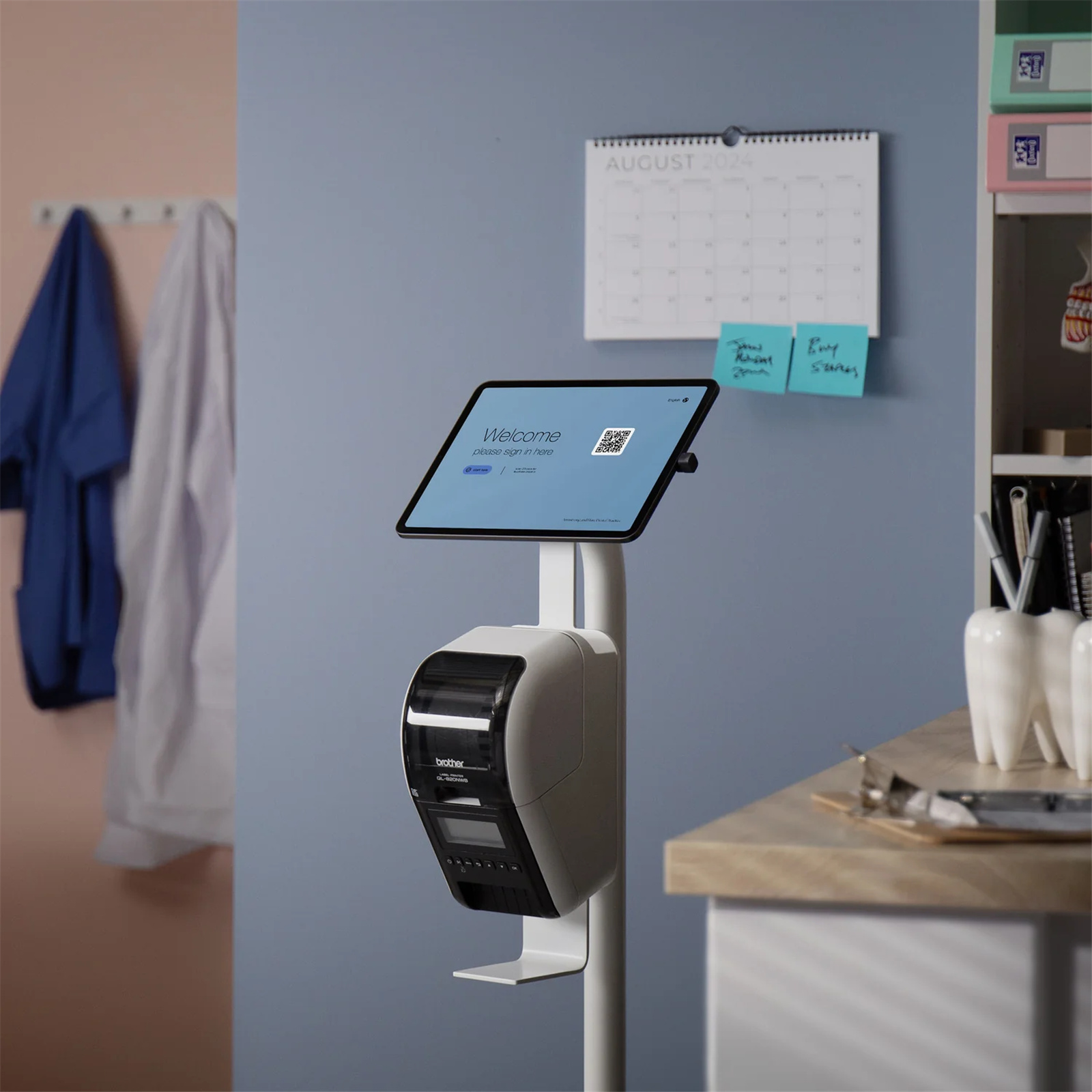 The Bouncepad Core Floorstanding with integrated Brother Printer Mount is a robust and secure tablet floor stand, designed specifically for visitor management systems. Its sleek, minimal design combines functionality with style, making it perfect for reception areas, offices, and events.
