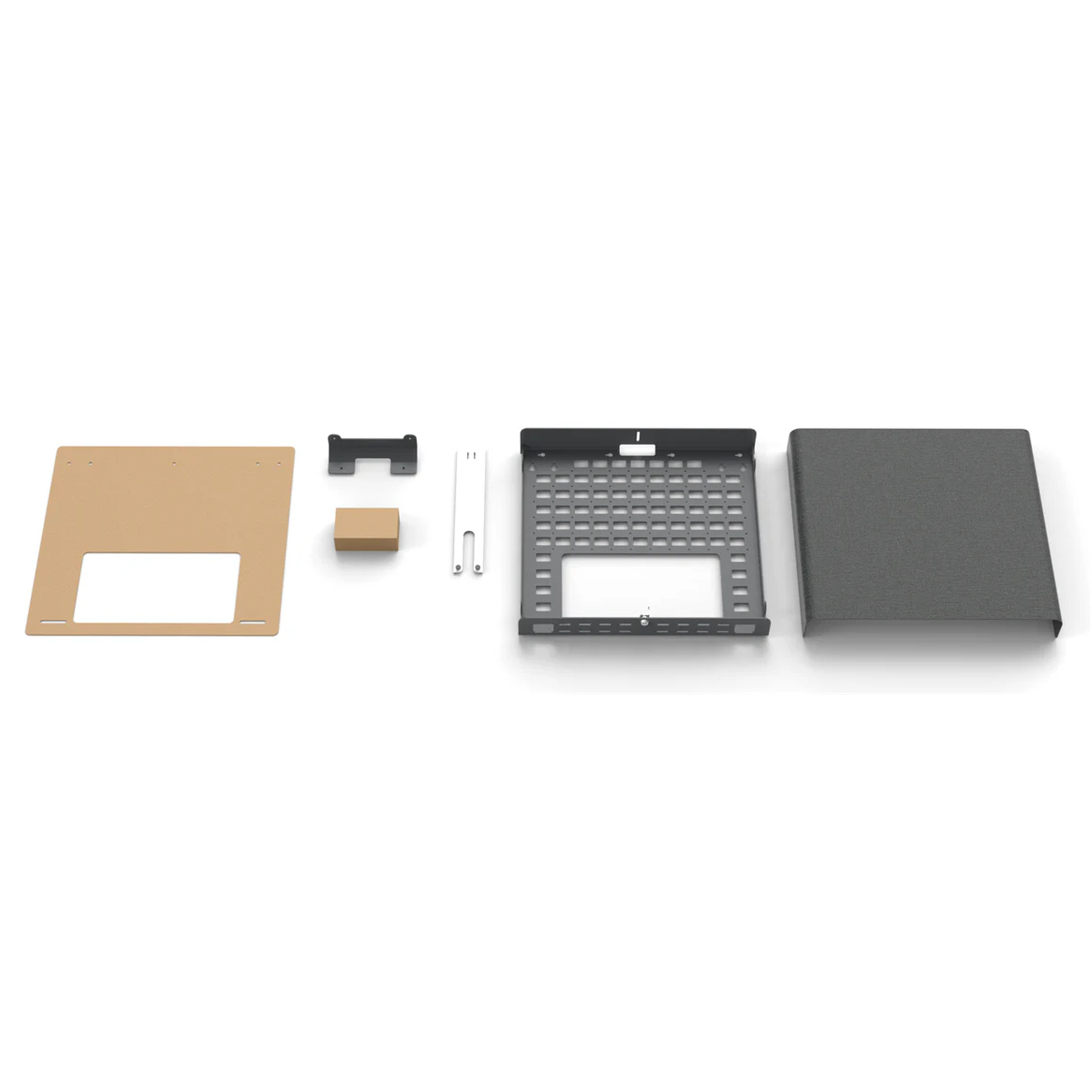 The body of AV Credenza Mini features a special hole pattern that allows for ample cool airflow while enabling easy Velcro-strapping of small components and cable management before, or after, you've wall-mounted your credenza. In addition, VESA 100 holes enable traditional mounting of compute NUCs.