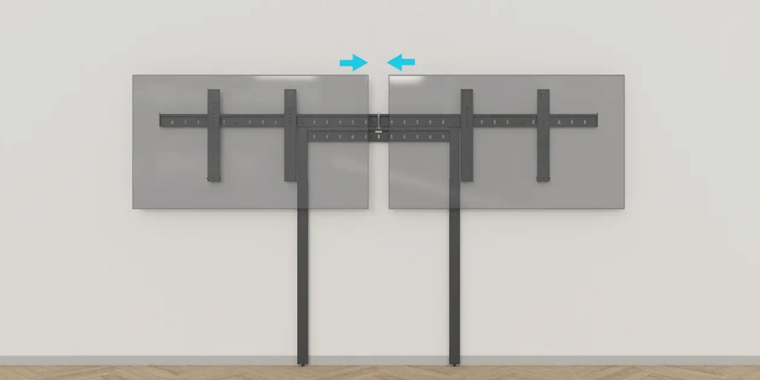 So you want to conventionally mount two large displays to the wall in your meeting room? Cool. Just coordinate your favorite structural engineer, electrician, IT staff, facility manager, permitting specialist, contractor, drywaller, and painter. Or, simply click the Add-to-cart button on this page.