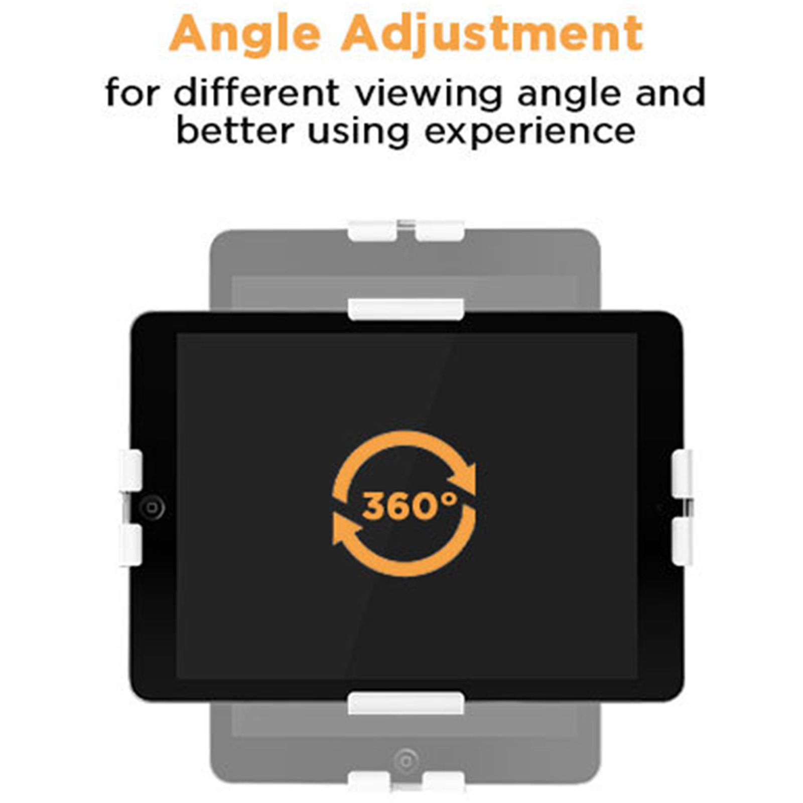 Featuring innovatively designed claws, KAD03 is compatible with most 7.9"-11" tablets, including Apple iPad and Samsung Galaxy Tablet. Both horizontal and vertical view are available in order to provide better customer using experience. Silicone and EVA pads provide all-rounded protection for the precious device. Lockable design with anti-theft screw prevents it from theft and unwanted removal.