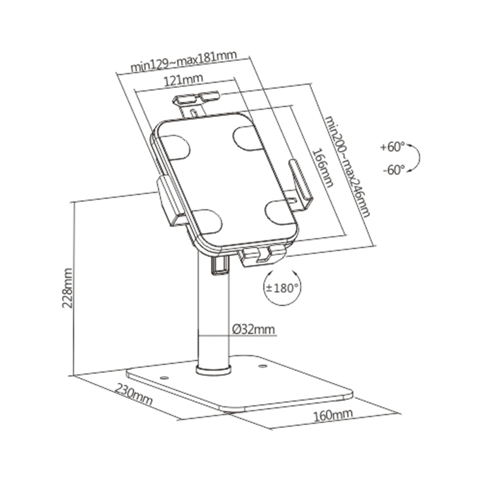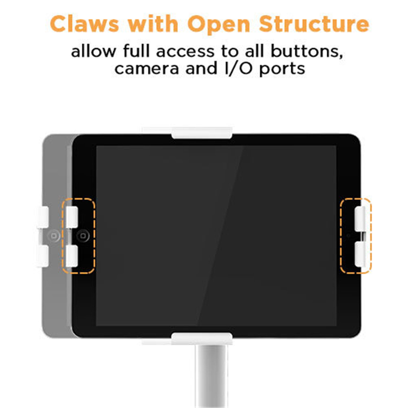 Featuring innovatively designed claws, KAD03-T is compatible with most 7.9"-11" tablets, including Apple iPad and Samsung Galaxy Tablet. Both horizontal and vertical view, as well as tilt function, are available in order to provide better customer using experience. Silicone and EVA pads provide all-rounded protection for the precious device. Lockable design with anti-theft screw prevents it from theft and unwanted removal. The internal cable management protects wires and creates a professional look for the tablet kiosk.