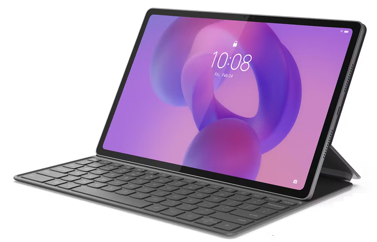 The Lenovo Folio Keyboard is a dedicated companion for the Lenovo Idea Tab Plus 12.1-inch tablet, creating a seamless extension of your device into productivity mode. It's precisely shaped to match the tablet's dimensions and connects directly via a 3-pin pogo pin interface, so there's no Bluetooth pairing or separate charging required - just attach it and begin typing.