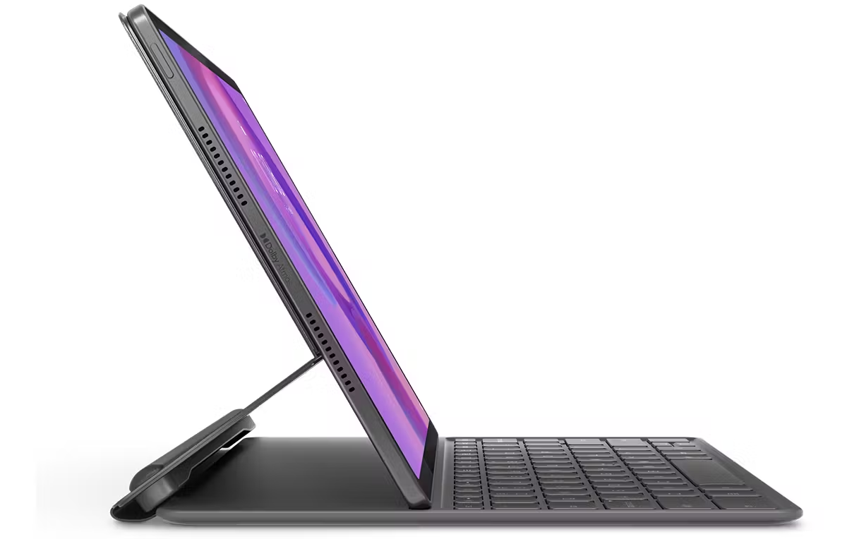 Beyond typing, the folio is engineered to improve usability in multiple scenarios. It includes a built-in stand, allowing you to prop up the tablet at a comfortable viewing angle for typing or watching videos. Additionally, the folio features a handy pen holder - a small but useful touch that keeps your stylus secure and within reach. This ensures that your Lenovo Tab Pen (or compatible stylus) stays safely slotted in when not in use.
