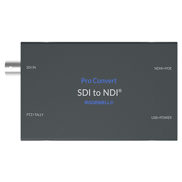 The Magewell Pro Convert SDI TX is a high-performance device designed to convert SDI signals into NDI® streams, facilitating seamless integration of traditional video equipment into IP-based workflows. This compact and robust encoder supports video resolutions up to 2048x1080 at 60 frames per second, ensuring high-quality transmission suitable for professional broadcasting and live streaming applications.