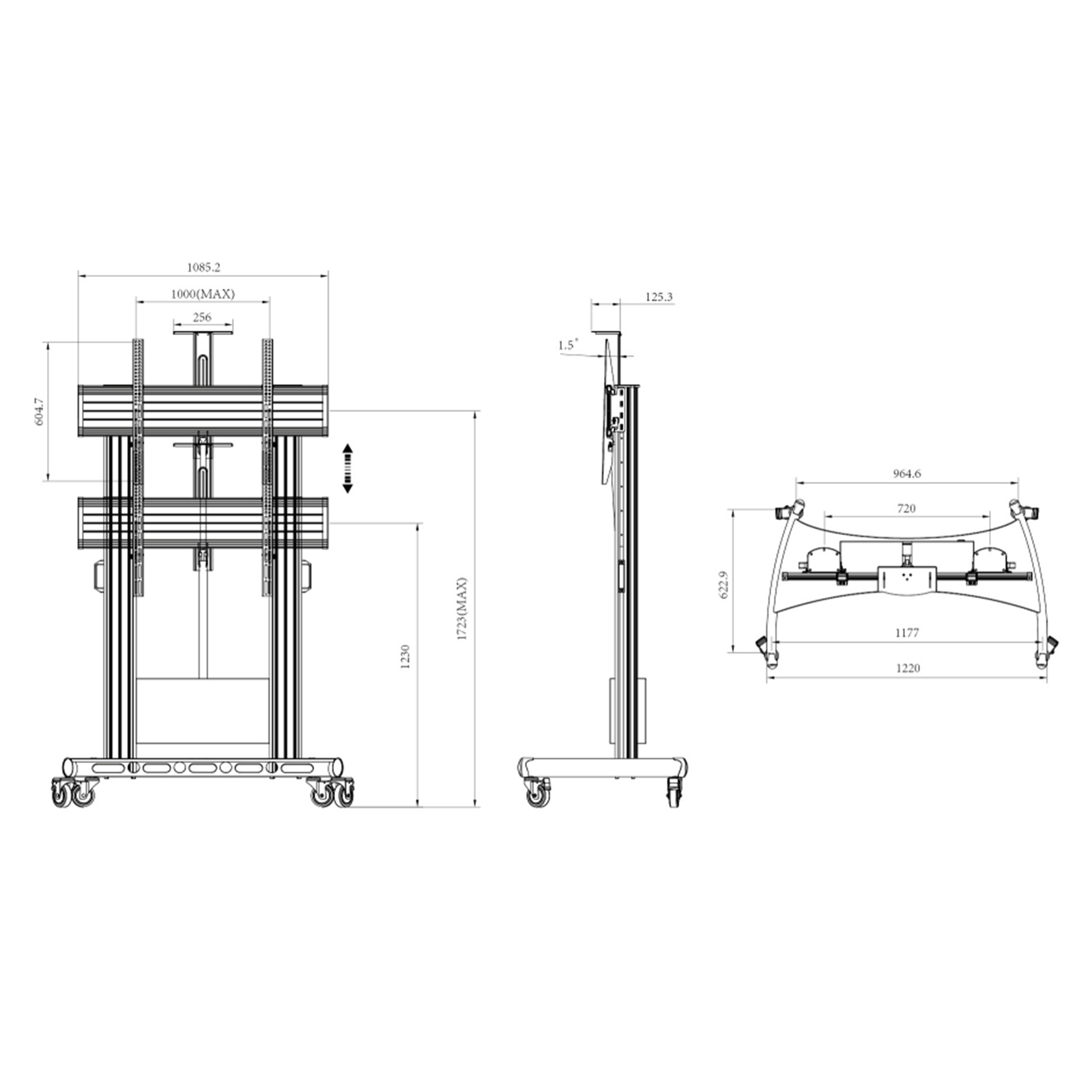 - Max load 300 lbs (136.4 kg). Fits most 60" to 100" TVs or smart-boards