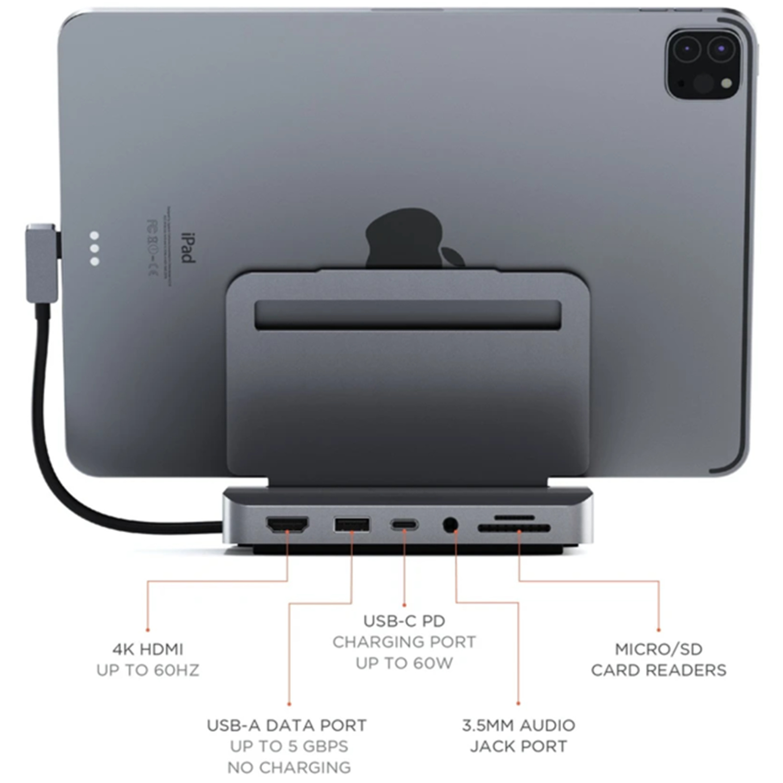 SATECHI Aluminium Stand Hub For iPad Pro & Selected Tablets - (Space Grey)