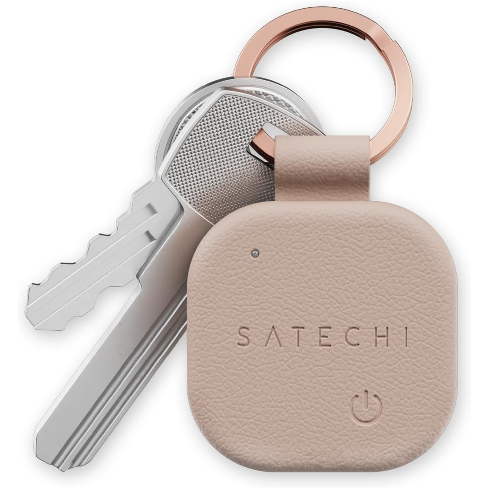 SATECHI Vegan-Leather FindAll Rechargeable Keychain work with FindMy (Desert Rose)