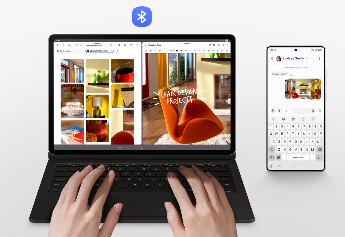 With Wireless Keyboard Sharing, you can easily connect to your other Galaxy devices and smoothly type or navigate on them. Switch between devices with ease and take control of your phone as you would on your tablet.