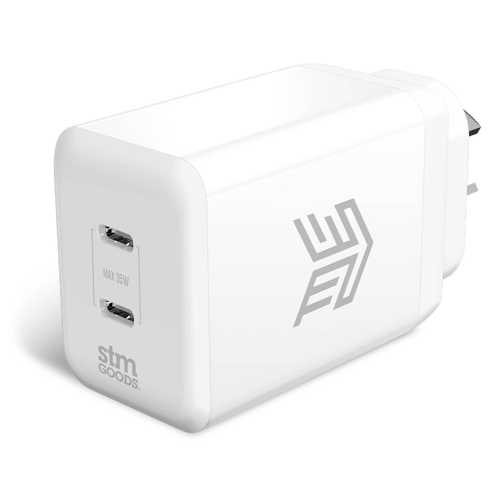 Product URL: https://www.pbtech.co.nz/product/TAASTM5568526/STM-35W-Dual-Port-USB-C-GaN-Charger---White-for-Sm