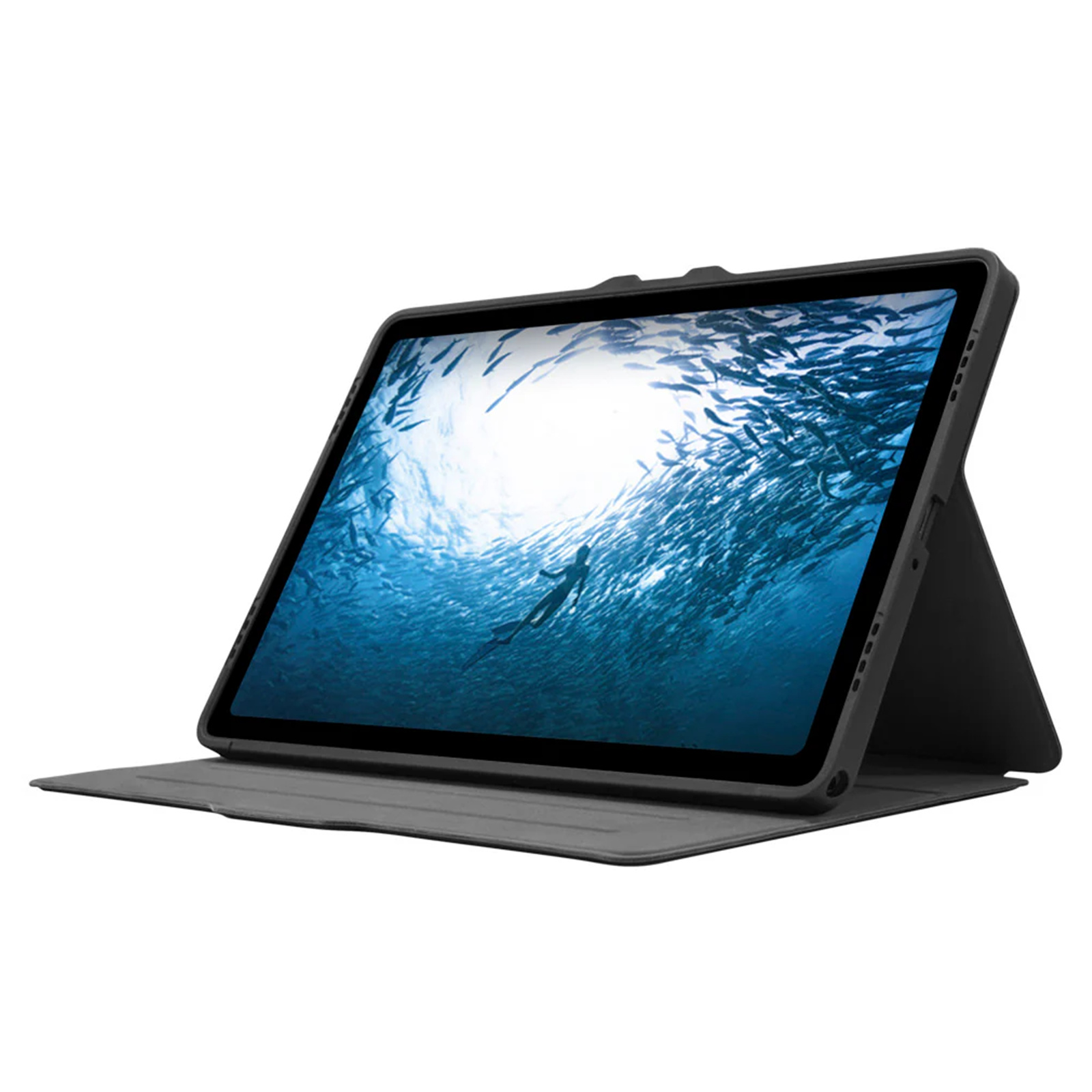 The non-slip interior lets you position your Samsung Galaxy® Tab A11+ and Tab A9+ in a range of reading or viewing angles for watching videos or interacting with your screen or flip the cover back for a comfortable typing angle.