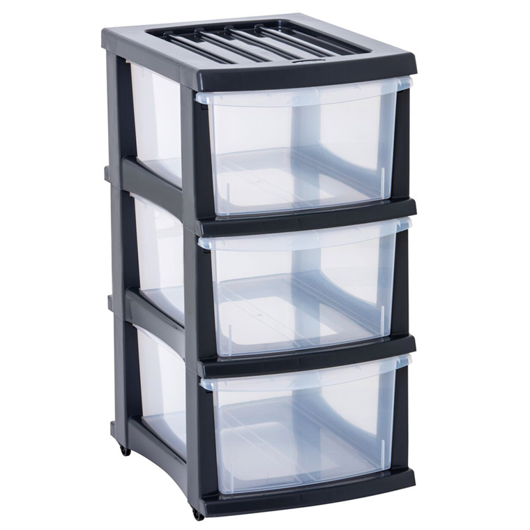 Each of the three drawers features a clear design, allowing the contents to be easily viewed. This makes organizing and identifying stored items fast and convenient, eliminating the need to open every drawer to find specific parts, accessories, or documents. It streamlines your organization and retrieval process.