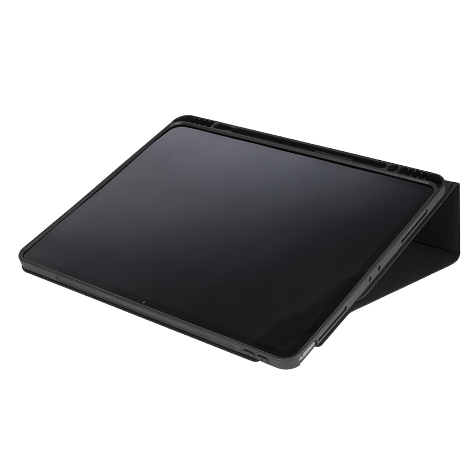 Tucano ELEMENTS Tablet Case Black for iPad Air 13" M3/ M2 Two-section cover design. Contrast colour edge. Front cover converts into a convenient stand. ON/OFF function. Camera opening on the back. Internal compartment for Tucano Pencil or A