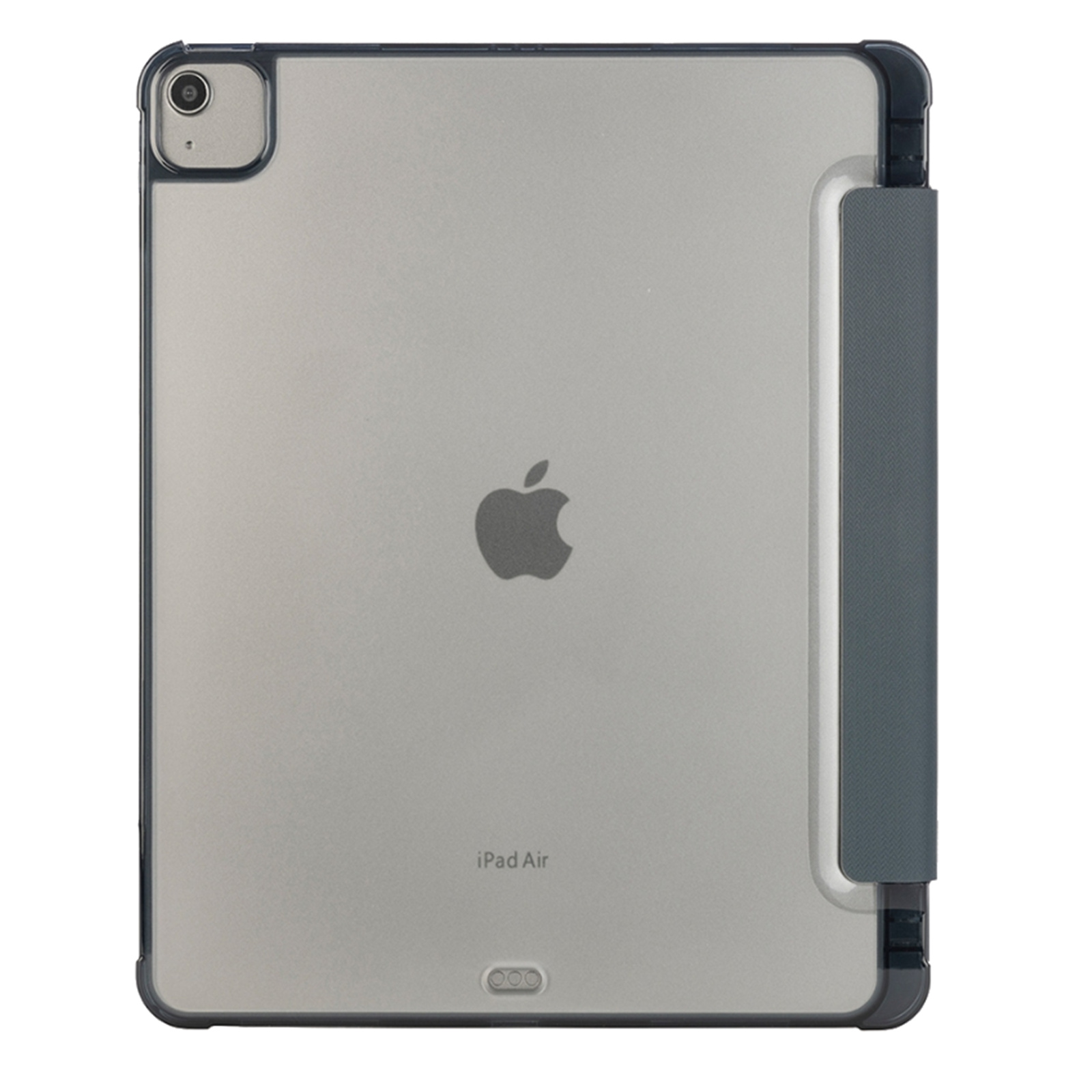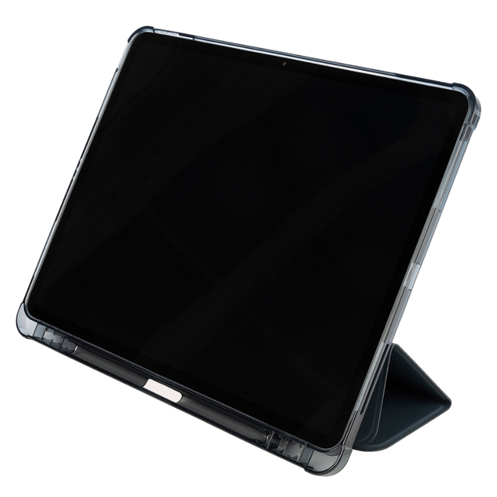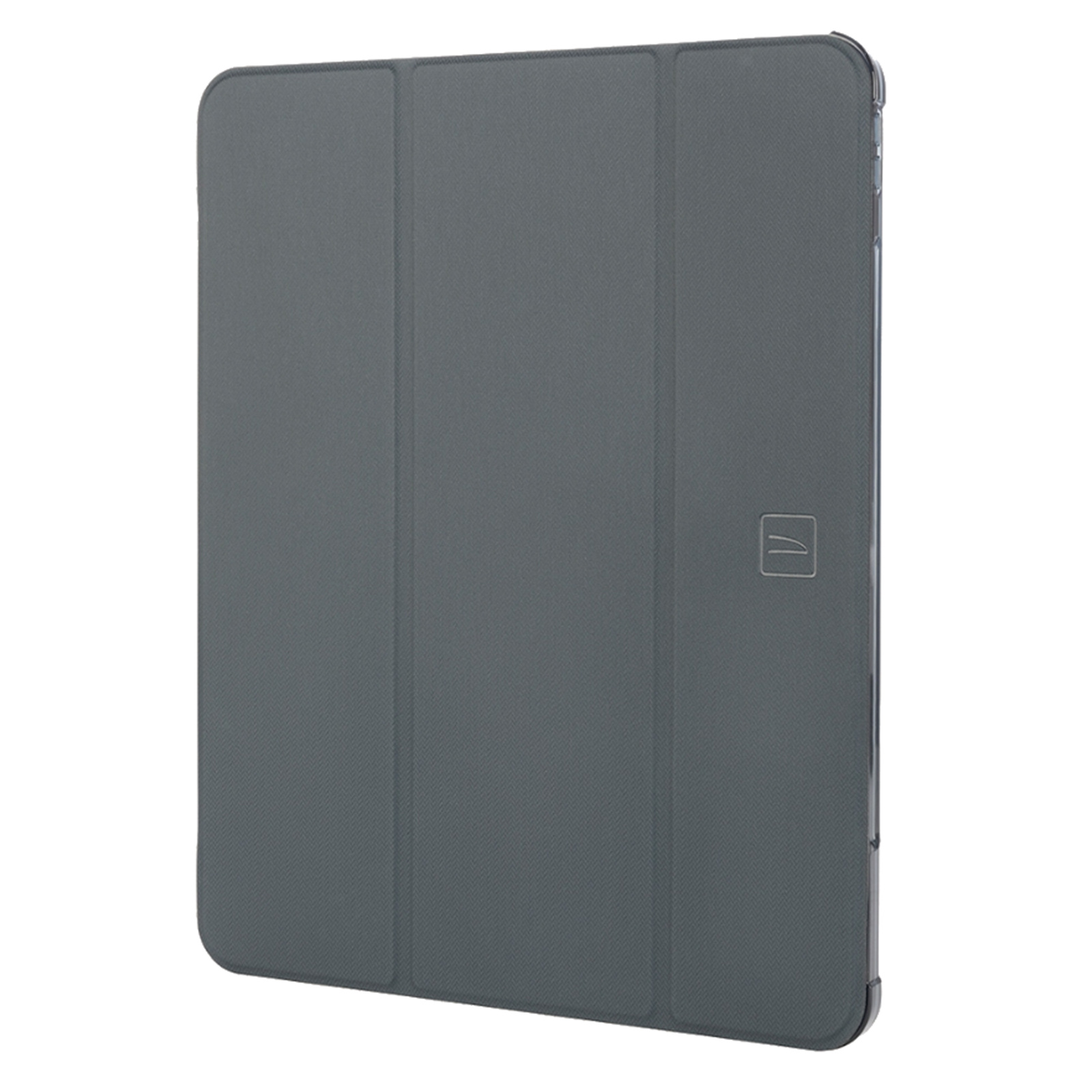 Ultra-protective iPad Air 13" M2 2024 case, partially made from recycled plastic, with front cover in satin-finish material, convertible to stand up. The anti-shock back shell is made of transparent, double-injected polycarbonate, complemented by a TPU perimeter edge for easier insertion of the iPad. The Satin cover is equipped with an internal compartment for Tucano Pencil and Apple Pencil. Military standard approved.