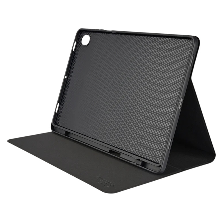 The interior of the case is lined with a soft, anti-scratch material, ensuring the tablet remains free from abrasions and minor damages during daily use. The rear shell is constructed from soft, protective thermoplastic polyurethane (TPU), providing a snug fit and additional protection against impacts. An opening in the rear shell accommodates the tablet's camera, allowing users to capture photos and videos without removing the case.