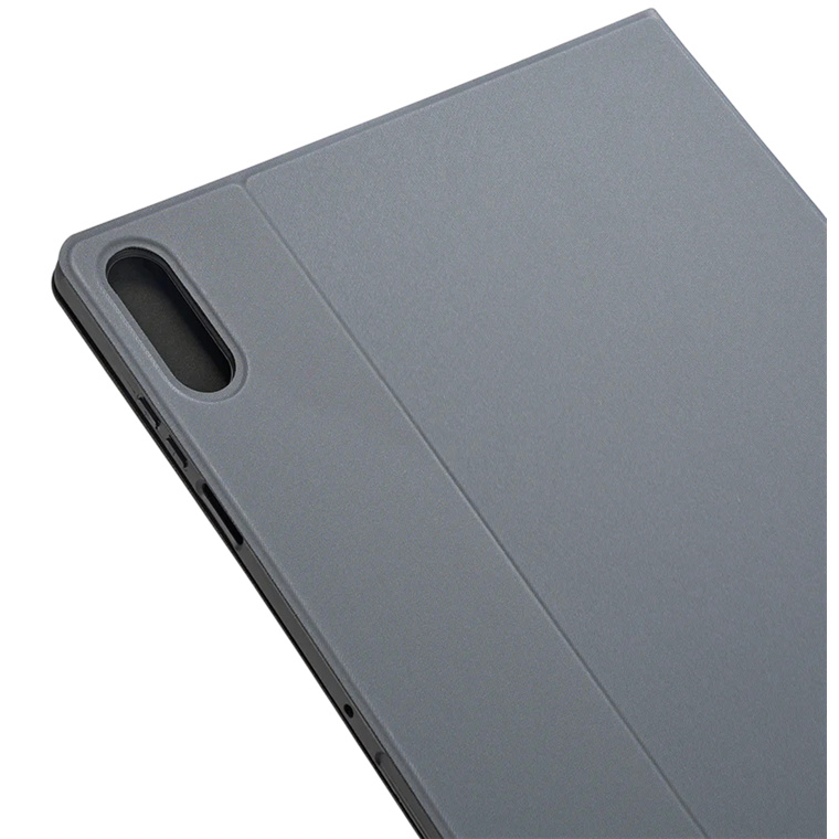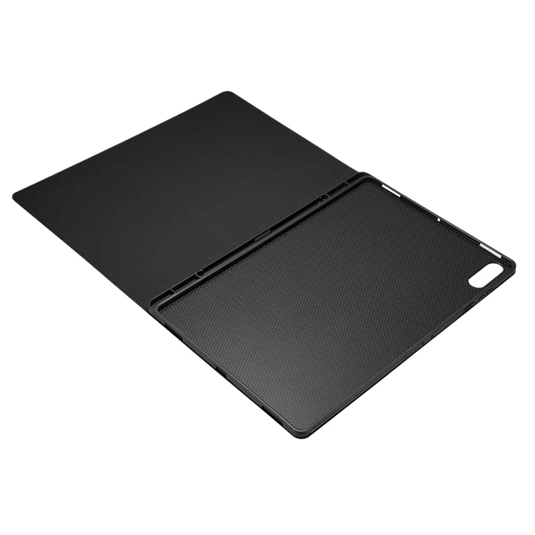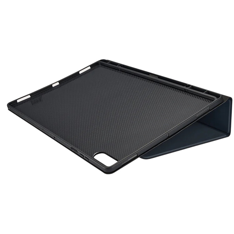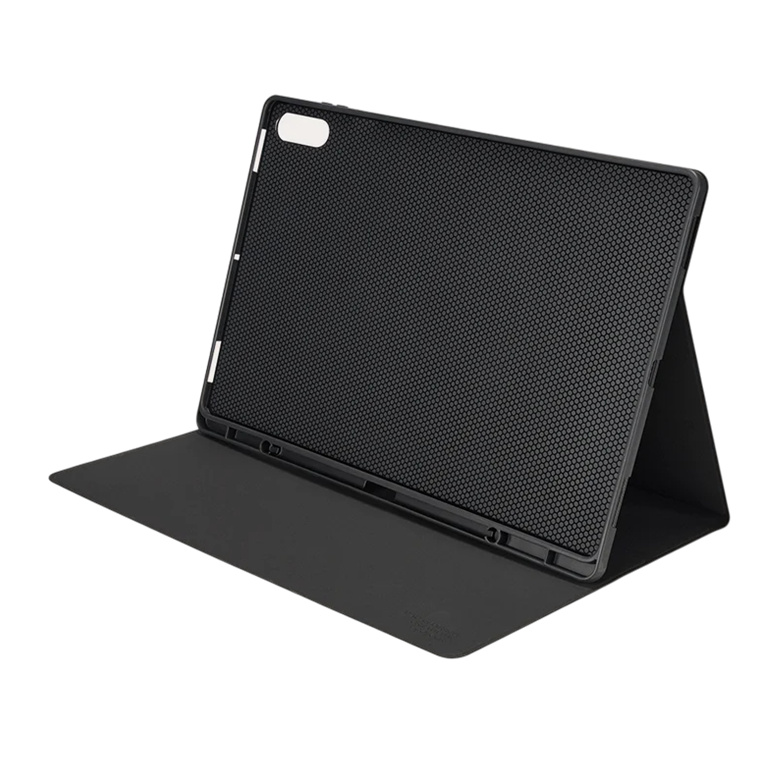 The interior of the case is lined with a soft, anti-scratch material, ensuring the tablet remains free from abrasions and minor damages during daily use. The rear shell is constructed from soft, protective thermoplastic polyurethane (TPU), providing a snug fit and additional protection against impacts. An opening in the rear shell accommodates the tablet's camera, allowing users to capture photos and videos without removing the case.
