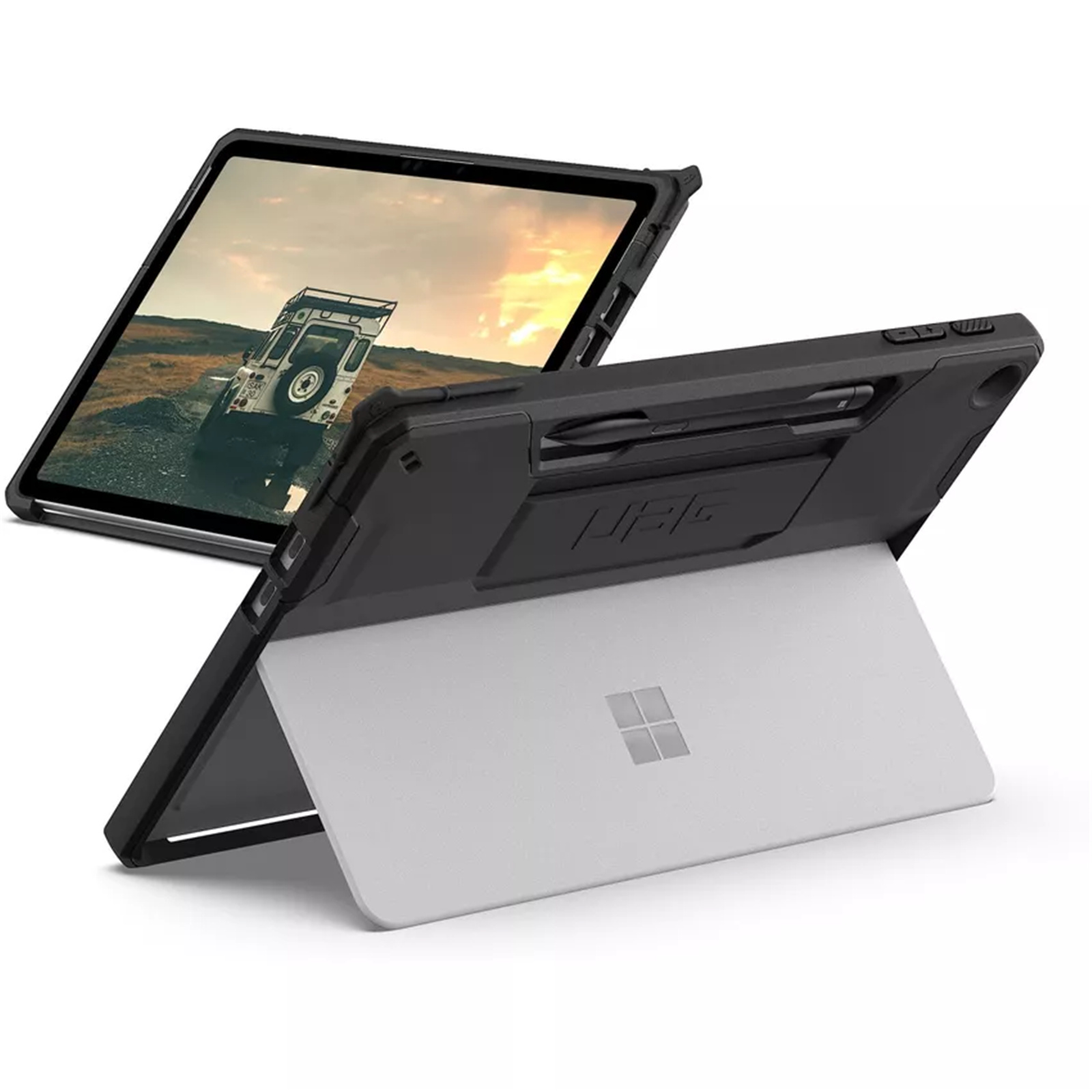 Our Scout Series case is built to last and protect your device from everyday accidents. Real-world military drop tested, this case is made with a durable armor shell and impact-resistant bumpers, crucial for drop protection. Its non-slip tactile grip and comfortable soft-touch silicone hand strap provide premium handling and make it easier to work on the go. Surface Slim Pen holder so you can keep your Pen secure and close by. Multiple anchor points for an adjustable shoulder strap (shoulder strap not included). The thoughtful, open Scout design also allows for full use of the tablet's kickstand. This case is also compatible with the Microsoft Surface Type Cover Keyboard, perfect for work or school.