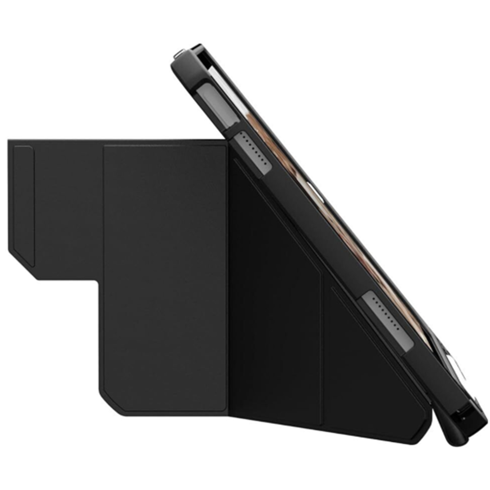 The Essential Armor case. Crafted with a featherlight co-molded construction and a slim profile, this case offers superior strength without the bulk. You'll barely notice it's there, but you'll be glad it is when the unexpected happens. The corner impact protection ensures that your tablet is guarded against the wear and tear of daily life like scratches or dents that compromise your device's pristine look. The smart auto-wake/sleep folio cover, complete with a secure magnetic closure, enhances the convenience and functionality of your tablet. The versatile multiple-viewing angle folio, with horizontal and vertical support, adjusts your tablet to the perfect angle for a movie night, a video call, a presentation, and more. The transparent back adds a touch of modernity while showcasing the design of your tablet. Plus, our dedicated stylus holder, compatible with both the Apple Pencil and Logitech Crayon, keeps your creative tools within easy reach. Elegance meets resilience - your tablet deserves no less.