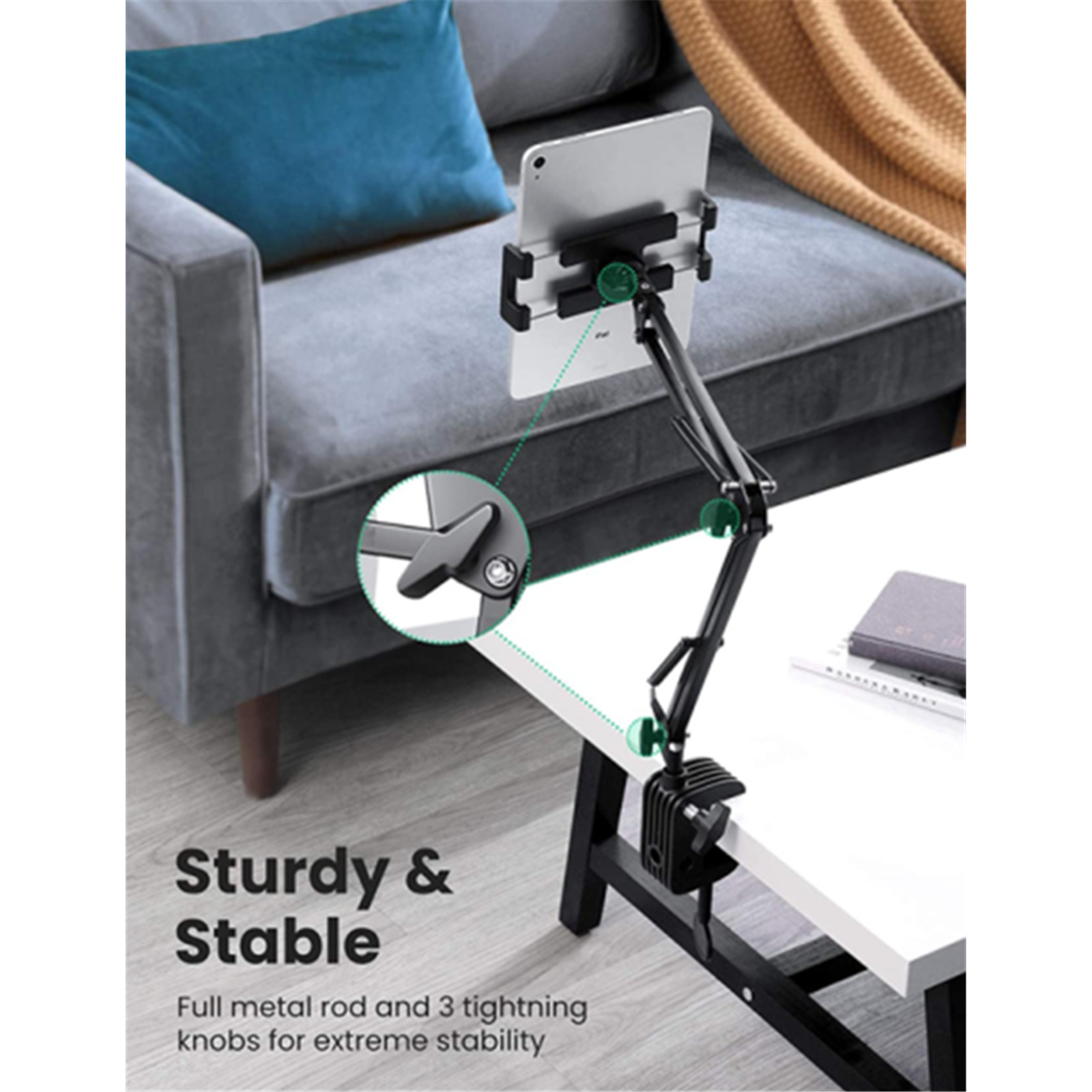 UGREEN 50394 Tablet / Phone Stand - Black, Folding Long Arm, Support with 4-12.9" Smart Phone / iPad / Nintedo Switch / Kindle