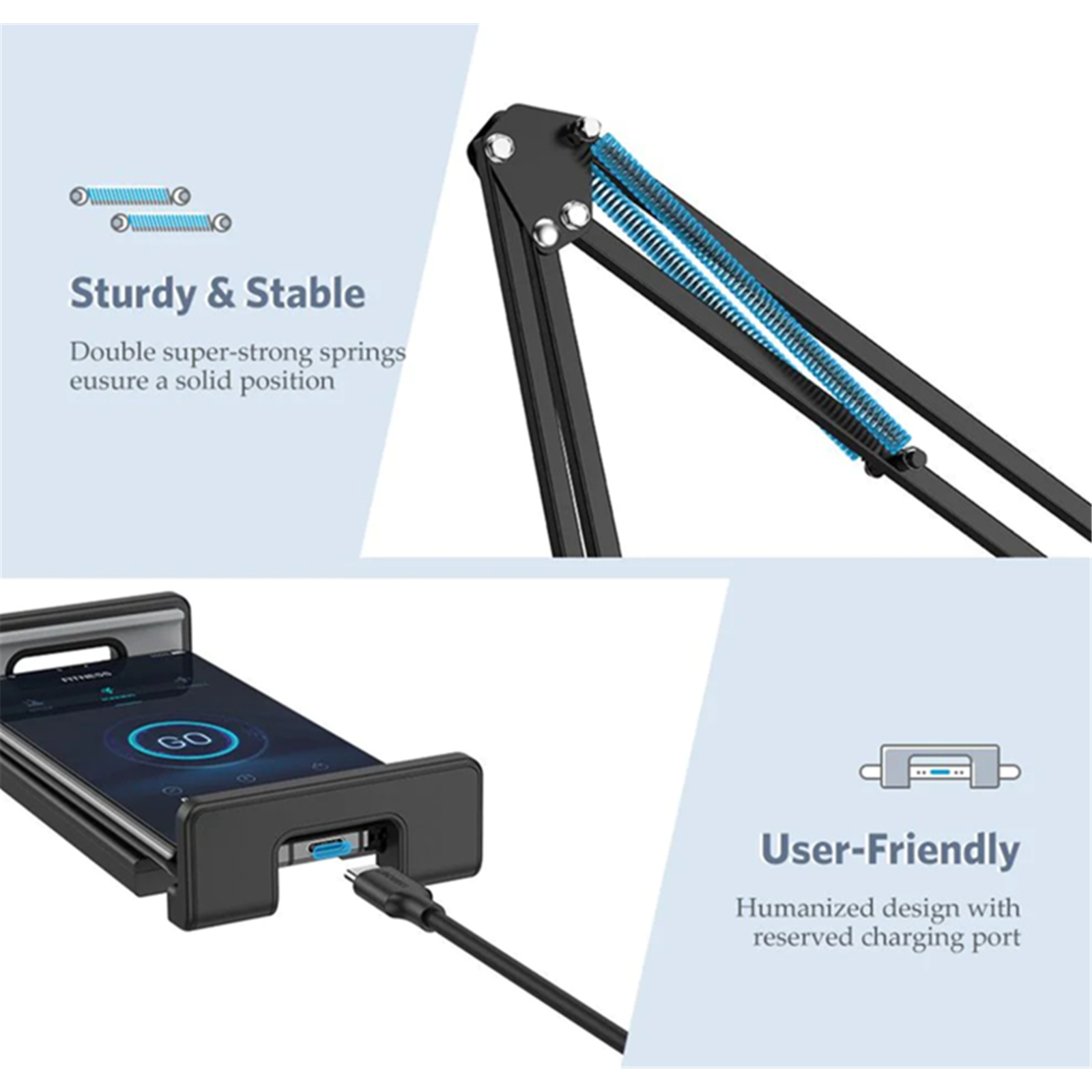 2-stage sturdy and adjustable aluminum alloy arm ensures durability and easy stability, providing more precise and stable positioning than gooseneck design without any shaking.