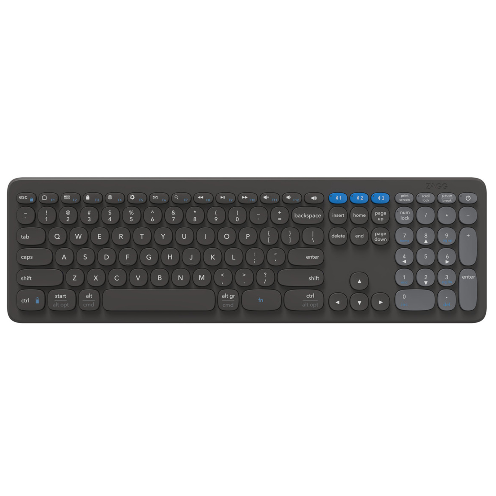 The full-size ZAGG Keyboard has been designed with optimal keystroke length and resistance to give you a comfortable, fast, and efficient typing experience. This keyboard can be charged wirelessly using a Qi-compatible charger or with the included Type-C charging cable. Pair the ZAGG Full Sized Keyboard with up to three devices. It's compatible with multiple operating systems including Windows, macOS, iOS, ChromeOS, and Android.