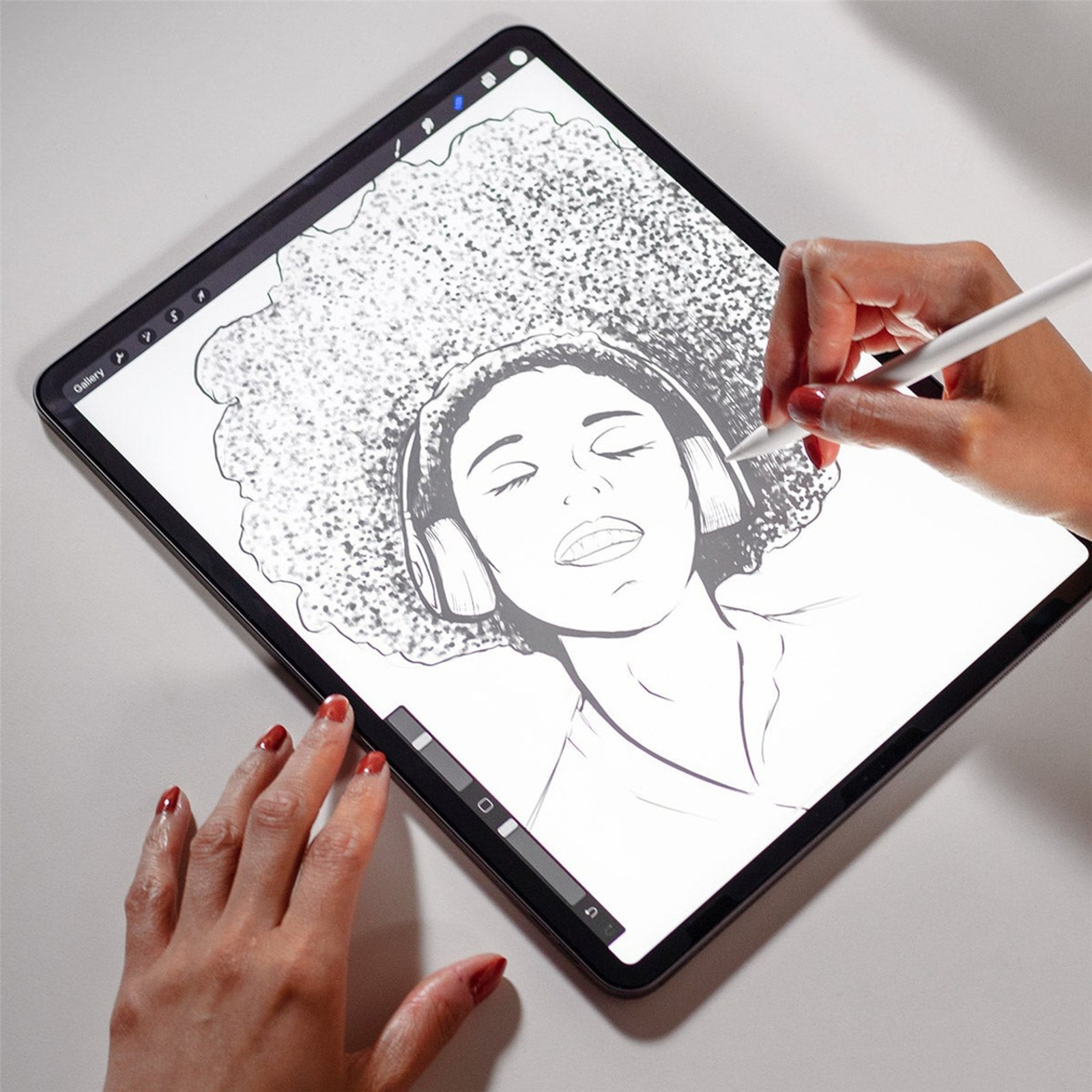 The matte surface increases stroke resistance so it feels like writing or drawing on paper.