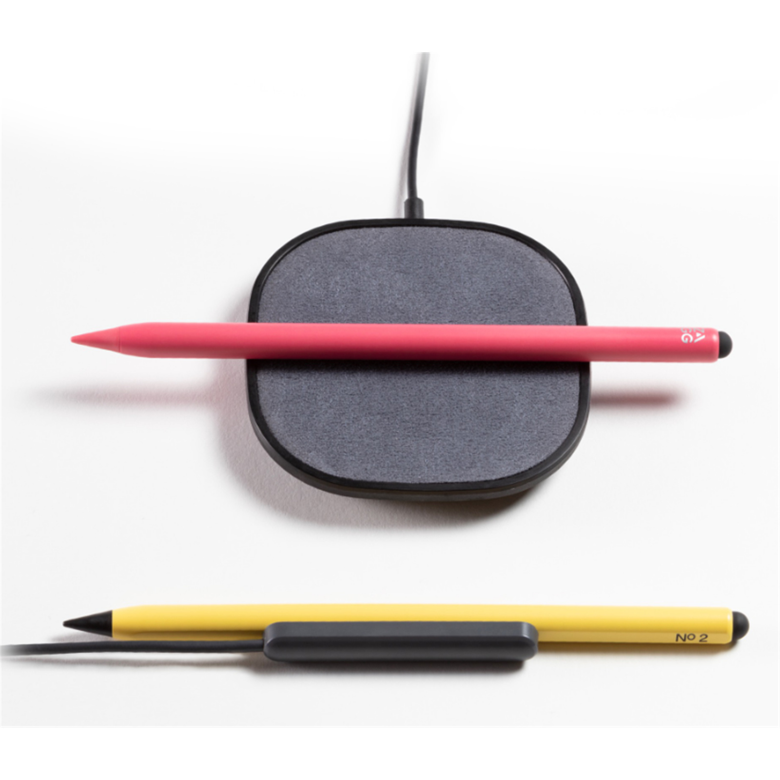 The Pro Stylus 2 attaches magnetically to the included wireless charging cradle. It also works with any wireless Qi-charger.