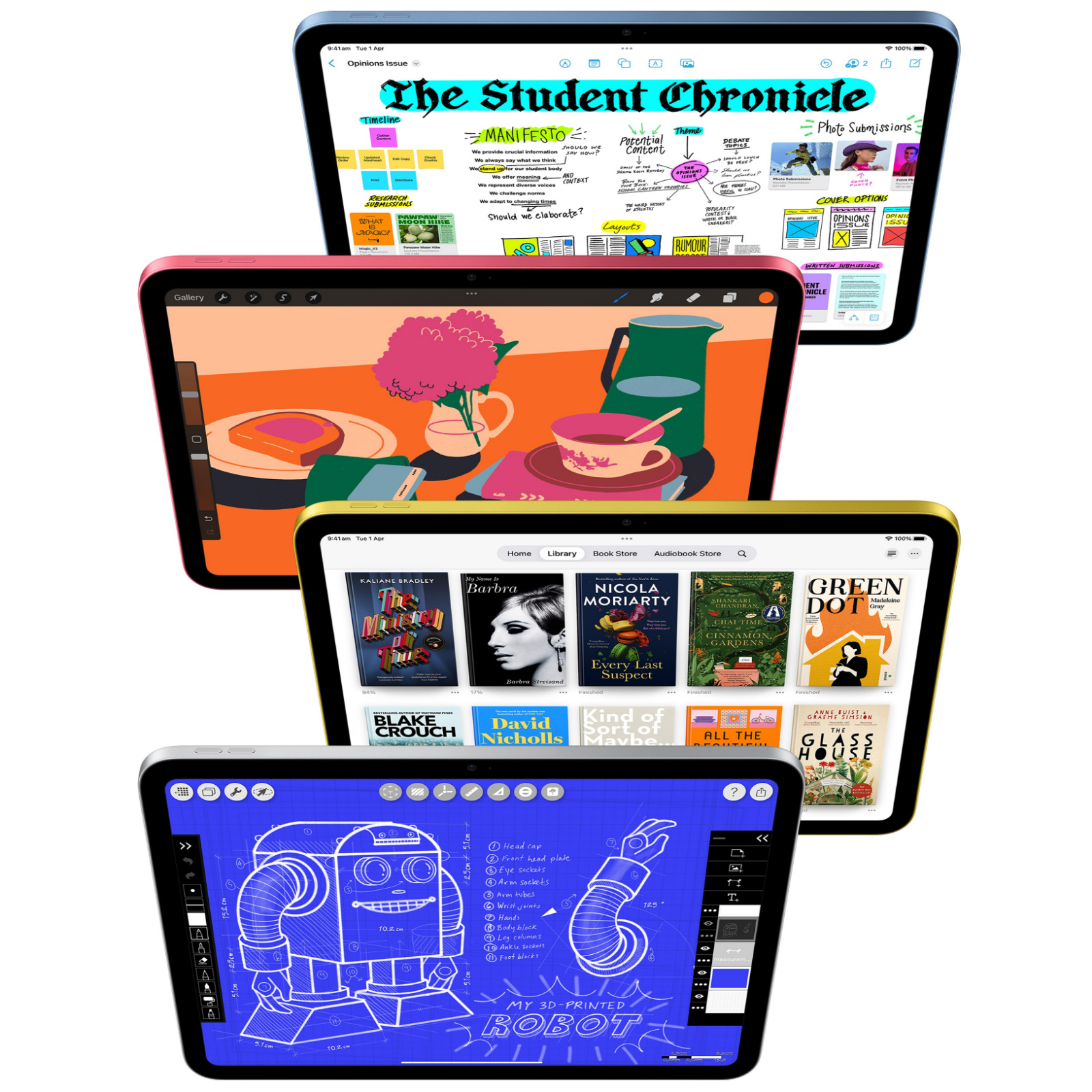 * The displays have rounded corners. When measured diagonally as a rectangle, the 13-inch iPad Pro is 13 inches, the 11-inch iPad Pro is 11.1 inches, the 13-inch iPad Air is 12.9 inches, the 11-inch iPad Air and iPad (10th generation) are 10.86 inches, and the iPad mini is 8.3 inches. Actual viewable area is less.