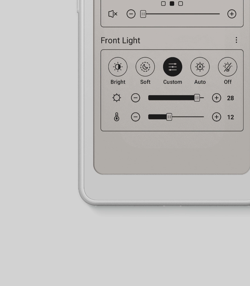 From morning sun to late-night reading, your front light adapts instantly. Skip the redundant settings, and switch seamlessly between different front light modes.