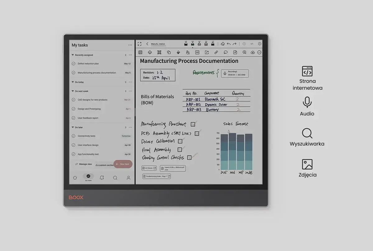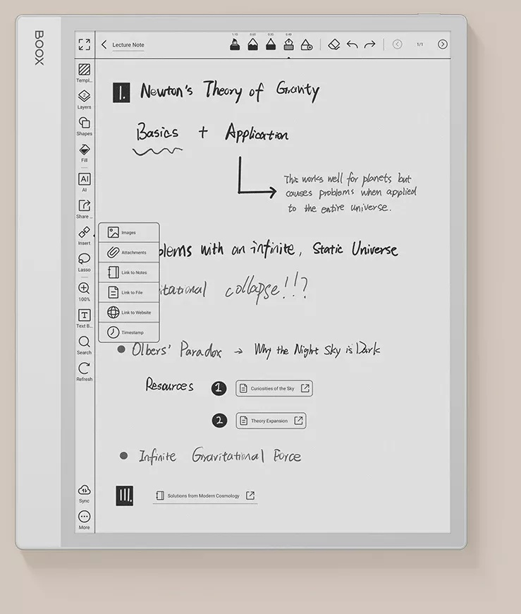 The ultra-slim Note Max features a 13.3" HD E Ink Carta 1300* screen, providing ample space for effortless thought development.