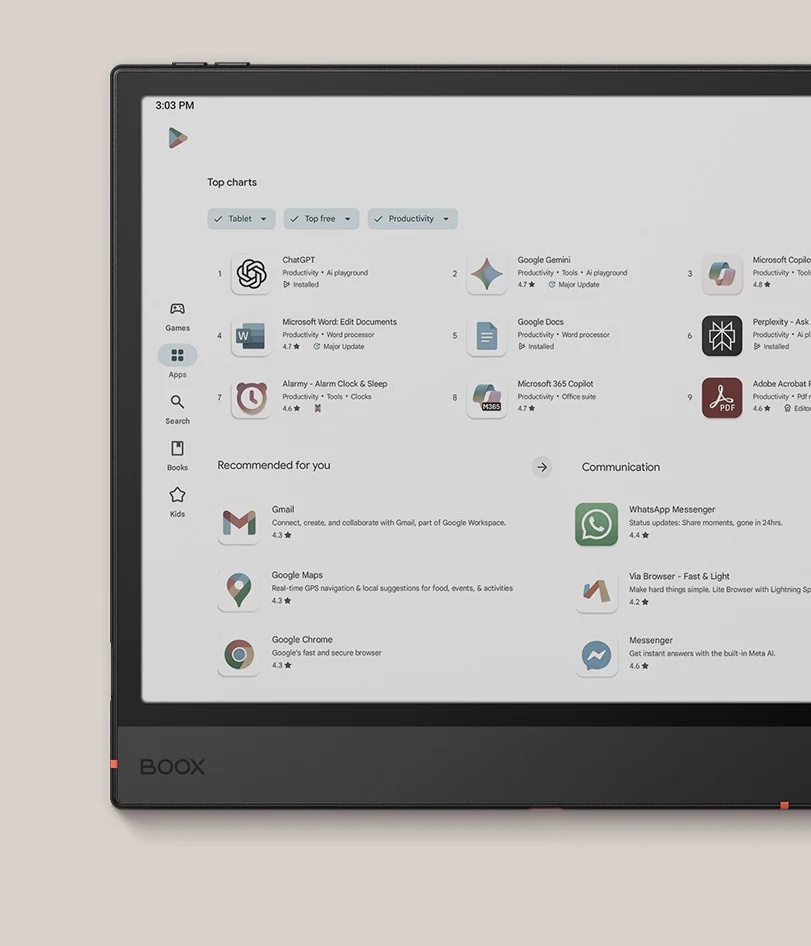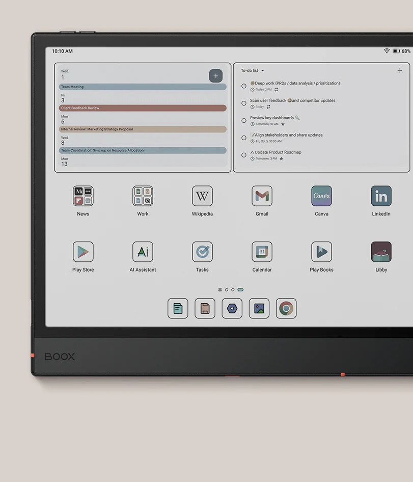 Thanks to its powerful octa-core processor and 6GB of RAM, Note Air5 C breezes through pro activities with ease. Multitasking, projects of any size, or basic office work are all handled with great efficiency. With BOOX Super Refresh Technology, every swipe and scroll feels snappy.