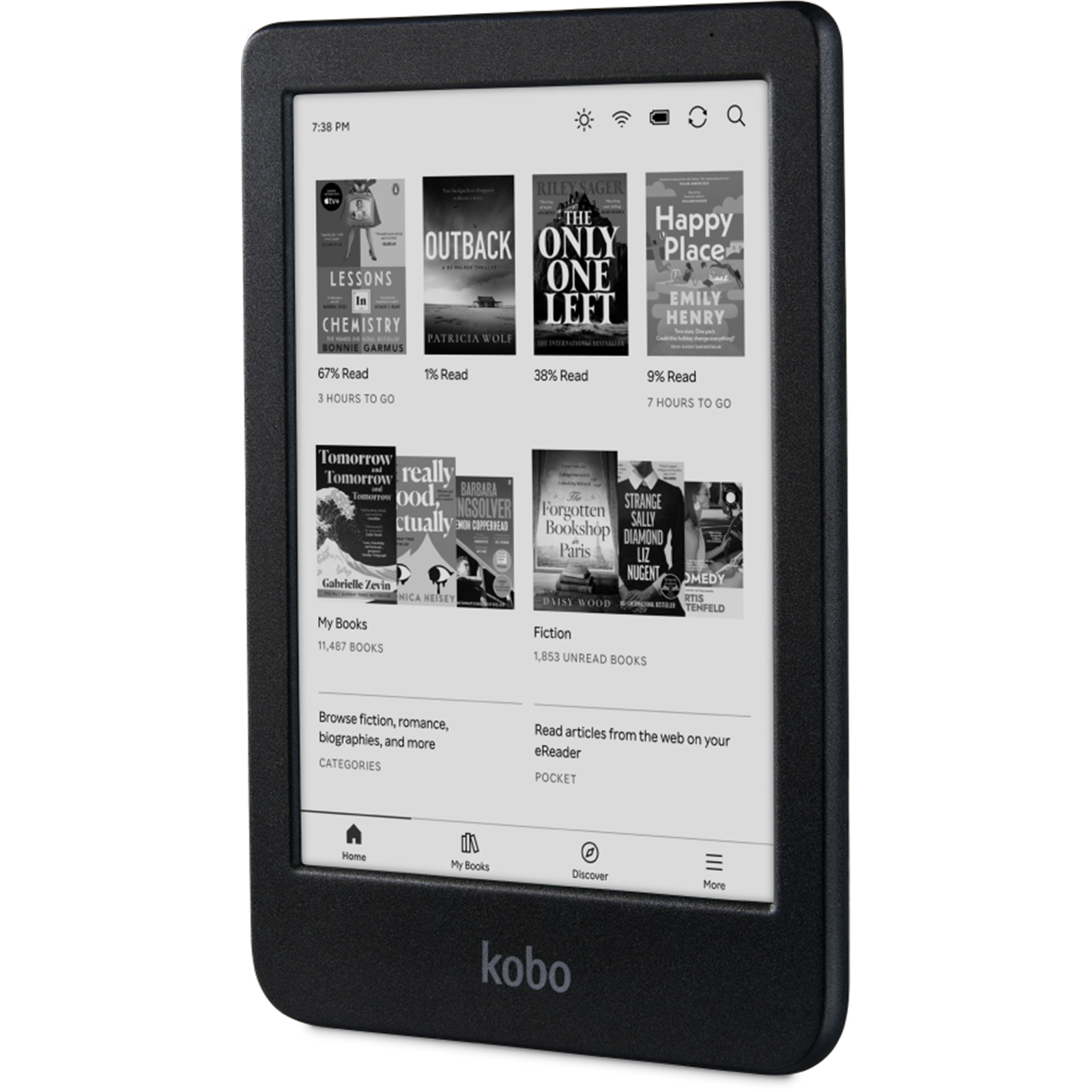 With our built-in Kobo Store, discover new eBooks and audiobooks right on your eReader. Subscribe to Kobo Plus[6] for all-you-can-read eBooks and audiobooks, borrow eBooks from your local library[5], and enjoy Pocket integration so you can save and read online articles.