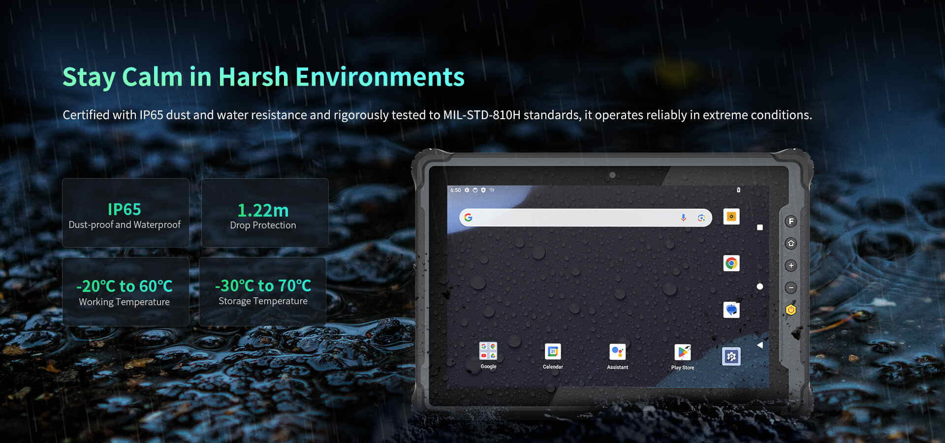 ONERUGGED M105Q Rugged Tablet ARM octa-core processor. 5G/Wifi. 8GB/128GB.10" Android 14. 10000mAh detachable Battery, IP65. Front/Rear Camera
