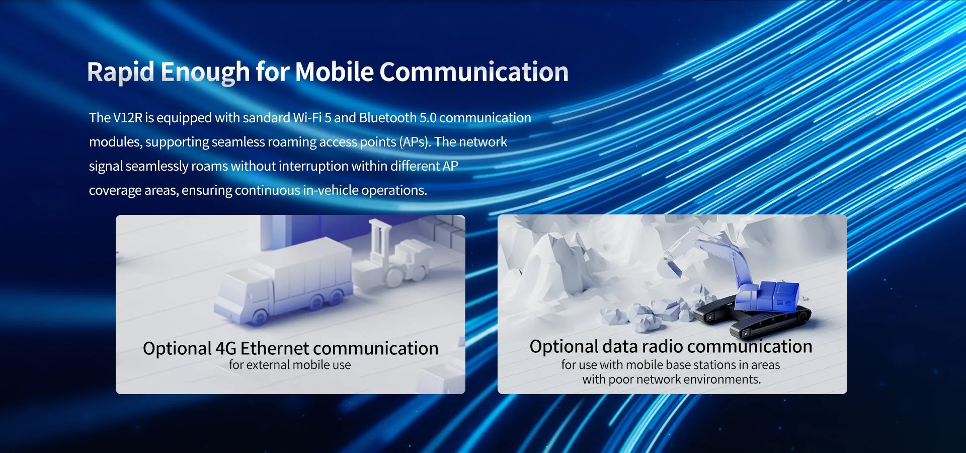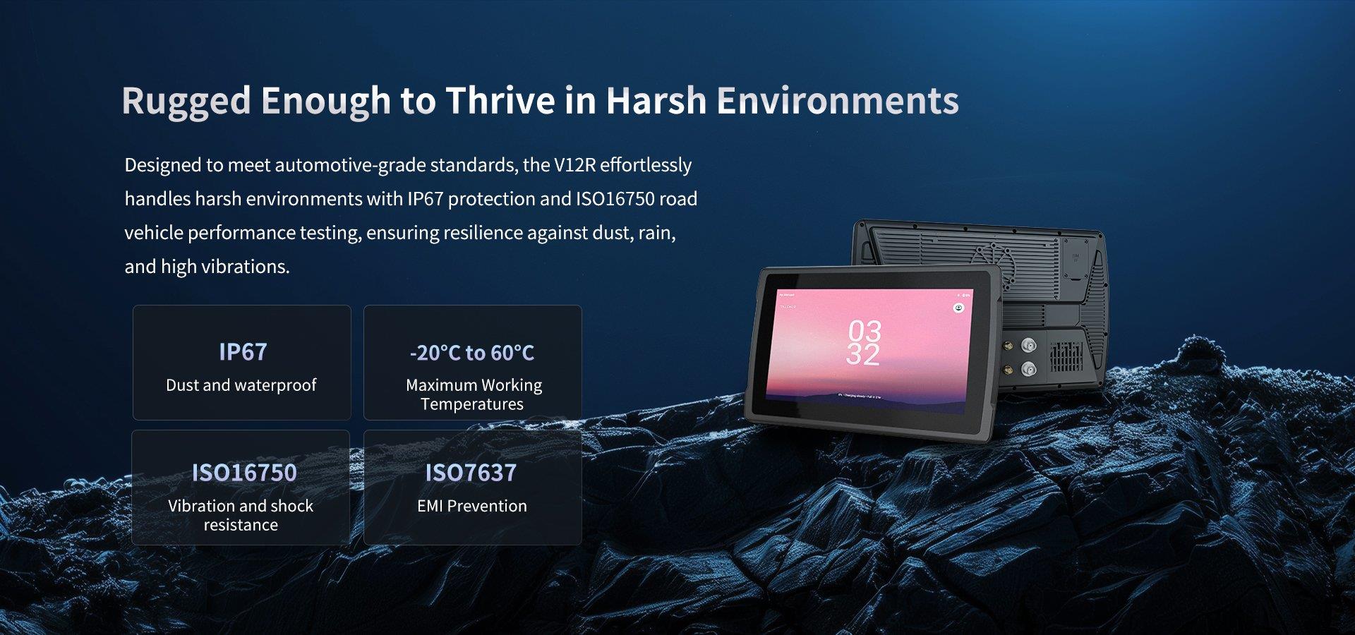 Introducing the V12R In-Vehicle PC, the next-generation performance powerhouse designed to meet the demands of modern vehicle applications. Powered by the RK3568 Quad-Core processor, this rugged PC is built to handle the most intensive tasks with ease. With the dual-system Android 12 + Linux operating system, you get the best of both worlds in terms of performance and flexibility. The 700 sunlight-readable screen ensures that you can easily view and interact with your data even in bright outdoor conditions. In addition, the V12R In-Vehicle PC comes equipped with Deutsch interface for seamless integration with your vehicle's systems. Communication options include CAN, RS232, RS485, and Ethernet, giving you a wide range of connection possibilities. For added convenience, the V12R features 4 signal inputs for cameras, allowing you to easily set up a comprehensive surveillance system. With its rugged construction and cutting-edge features, the V12R In-Vehicle PC is the perfect choice for those looking for top-of-the-line performance in their vehicles.