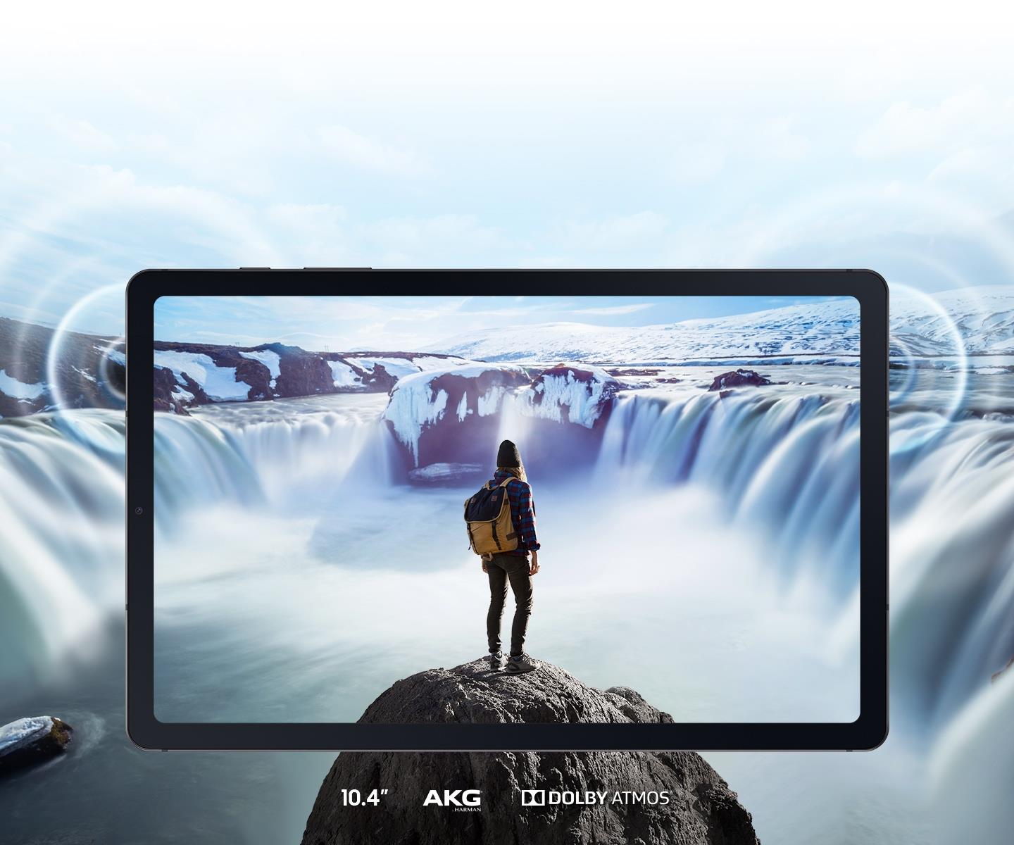 Less bezel means more room for a bigger, 10.4 inch display on a conveniently compact tablet. Enjoy an impromptu private screening in the park or binge watch in bed with dual speakers in landscape orientation that deliver rich, 3D sound.