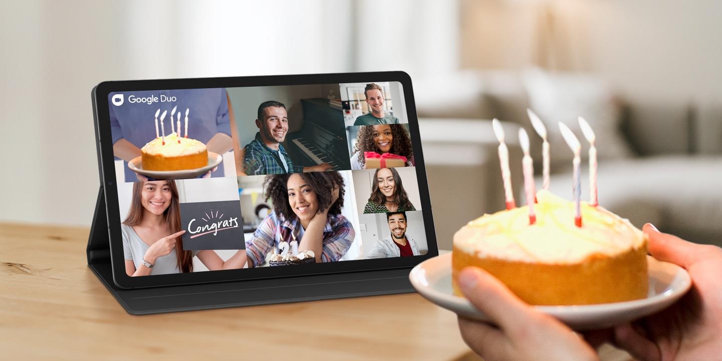 Galaxy Tab S6 Lite with Google Duo brings you closer to all the people you want to be with but can't. Whether you're checking in on a loved one or sharing a moment with the whole group of friends or keeping in touch with family, Tab S6 Lite with Google Duo keeps everyone together even when apart.