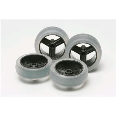 Tamiya 15366 JR Lg Dia Carbon Wheel Set - w/Soft Slick Tires for Super Mini 4WD