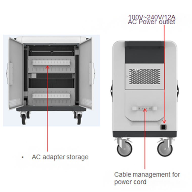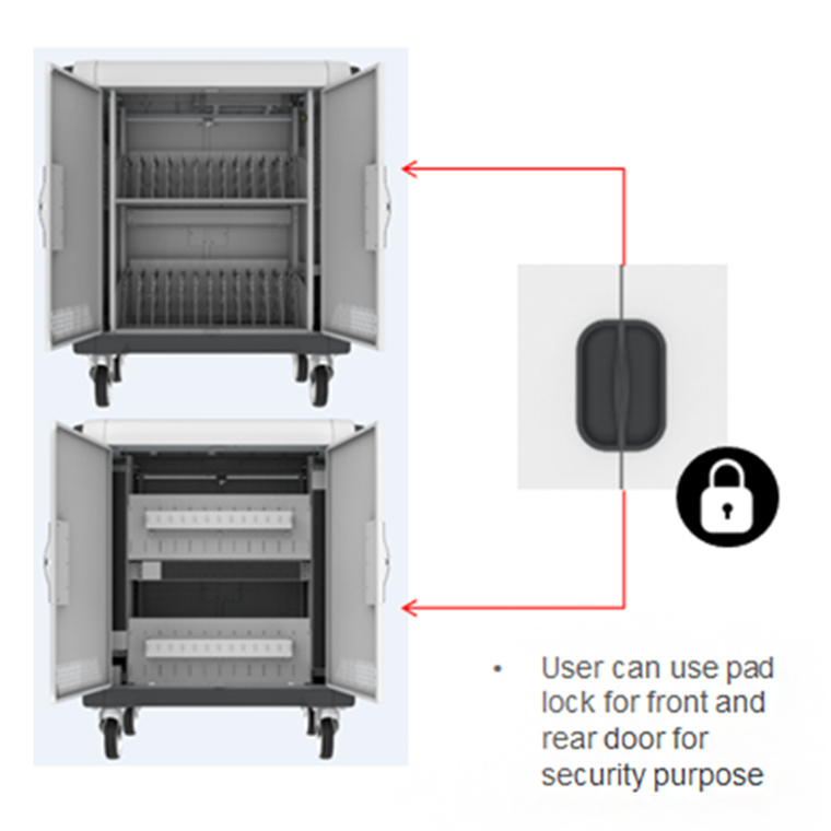 Chenbro Tablet / Laptop TN224VSH2401 Charging Trolley 24 Bays, With Lock. ( Includes Power Cord ), Supports Up to 15.6" Tablet, Laptop, Chromebook, Current up to 10A, 3 Years Warranty. Please Connect to Individual 10A Power Outlet