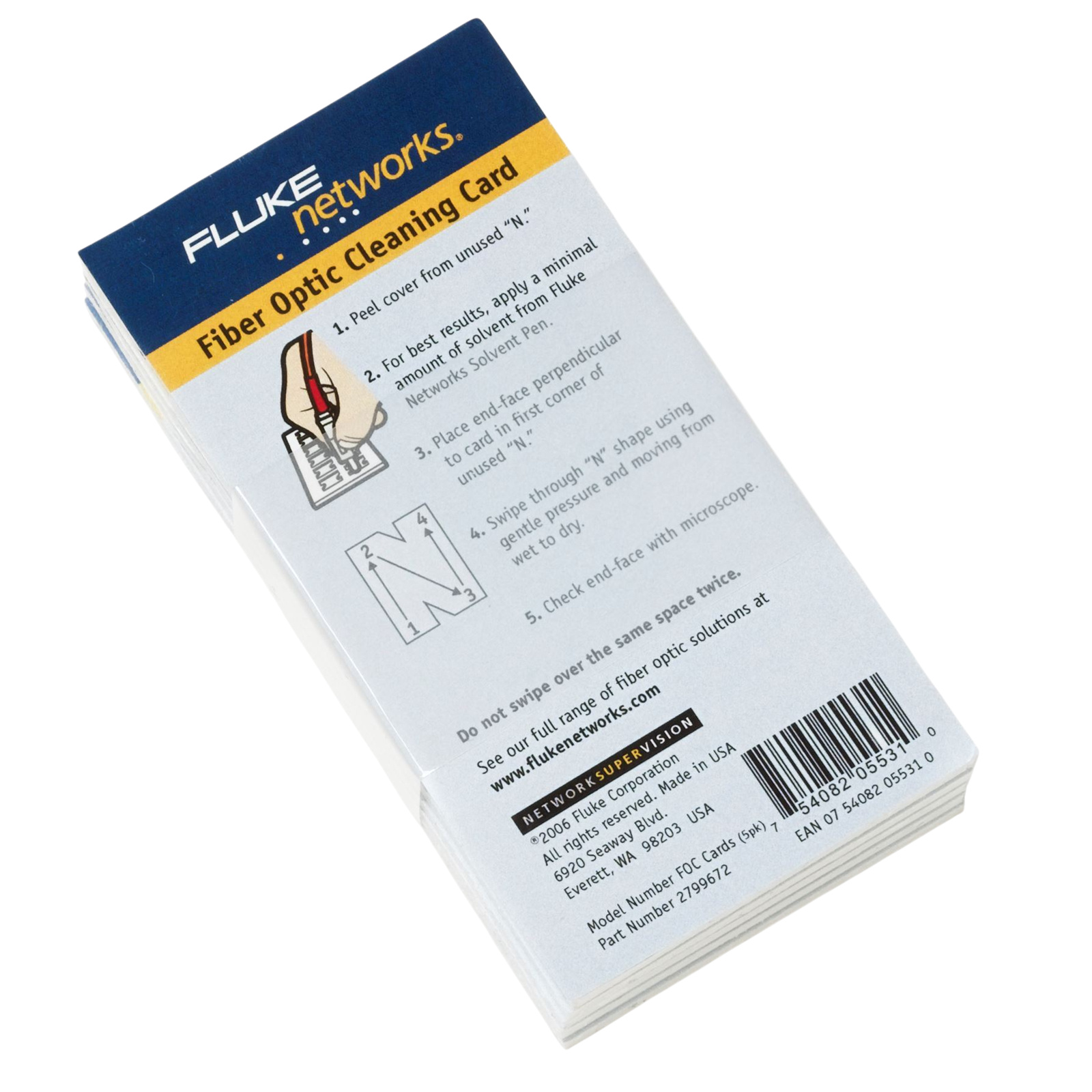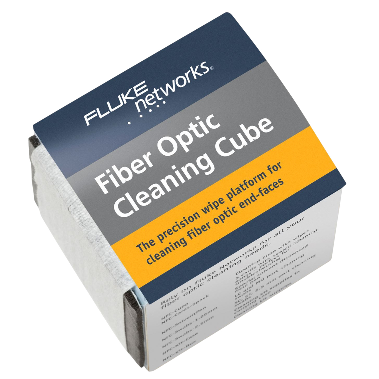 Fluke Networks Fiber Optic Cleaning Kits have the best tools to effectively remove the toughest contaminants with ease. Choose between the convenient Cleaning Cards or miniature Cleaning Cube when cleaning patch cords and select the appropriate-sized swabs when cleaning inside ports. All cleaning materials are lint-free and enable an optimal wet and dry cleaning process.
