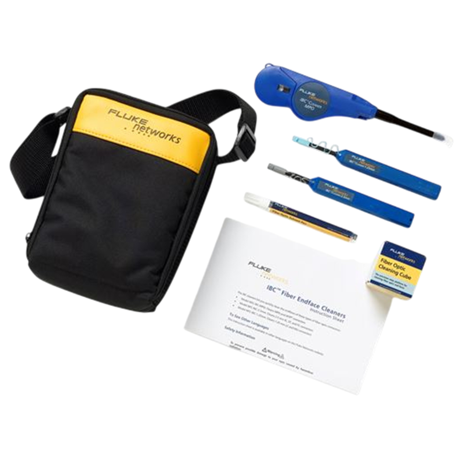 The Fluke Networks NFC-KIT-CASE-E Enhanced Fiber Optic Cleaning Kit includes a OneClick 1.25mm cleaner, a OneClick 2.5mm cleaner, a OneClick MPO cleaner, a solvent pen, a cleaning cube and a softcase. Because the #1 cause of fibre optic cabling failures is due to contaminated end-faces, all optical fibre connections must be clean and free of contaminants. Fluke Networks Fiber Inspection & Cleaning Tools are the solution. Whatever your particular needs are, Fluke Networks provides you with the solution to ensure your fibre connections don't bring your network down.