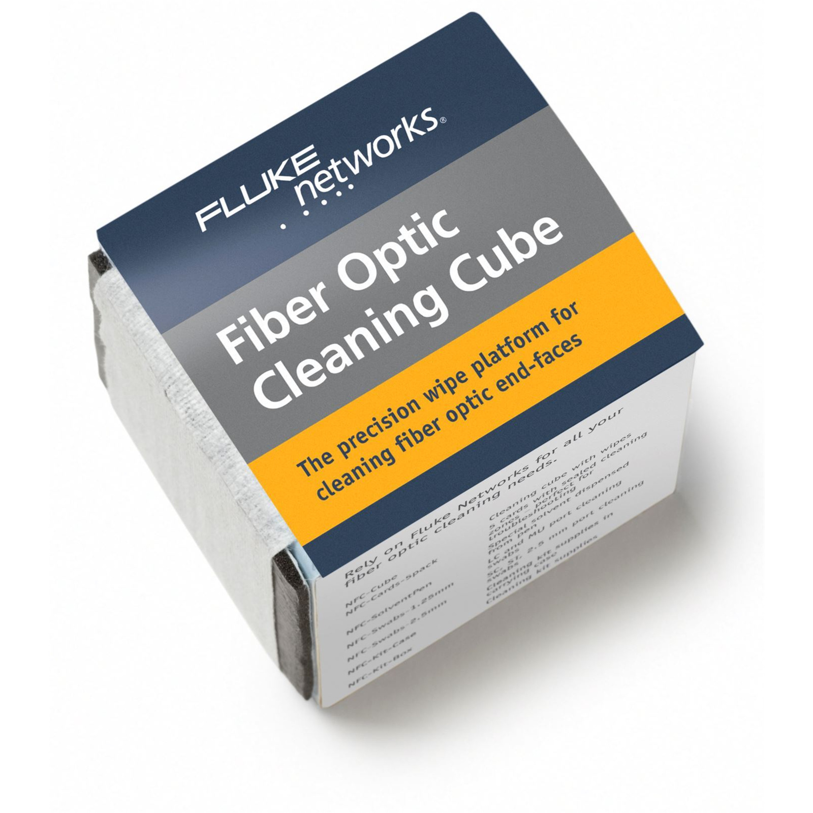 Fluke Networks Fiber Optic Cleaning Kits have the best tools to effectively remove the toughest contaminants with ease. Choose between the convenient Cleaning Cards or miniature Cleaning Cube when cleaning patch cords and select the appropriate-sized swabs when cleaning inside ports. All cleaning materials are lint-free and enable an optimal wet and dry cleaning process.