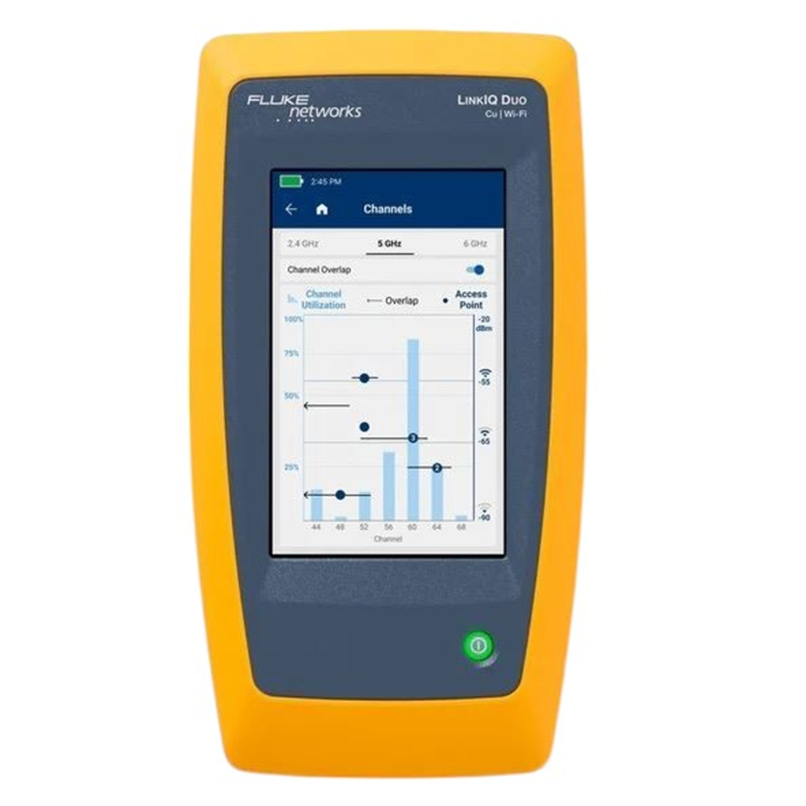 The Fluke Networks LinkIQ Cable+WiFi+Network tester delivers trusted cable testing, powerful network visibility and analysis for Wi-Fi up to 6E. Cable test results are shown in a graphical format for quick understanding and troubleshooting. A powerful suite of tools makes it easy to verify or troubleshoot network device connectivity and understand the Wi-Fi environment. The large, color, gesture-based display makes techs productive instantly. All in a rugged package backed by legendary Fluke support.